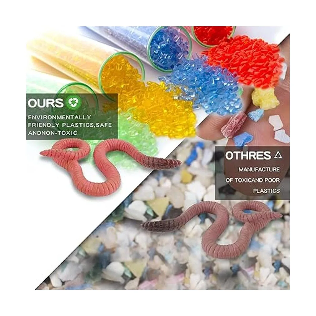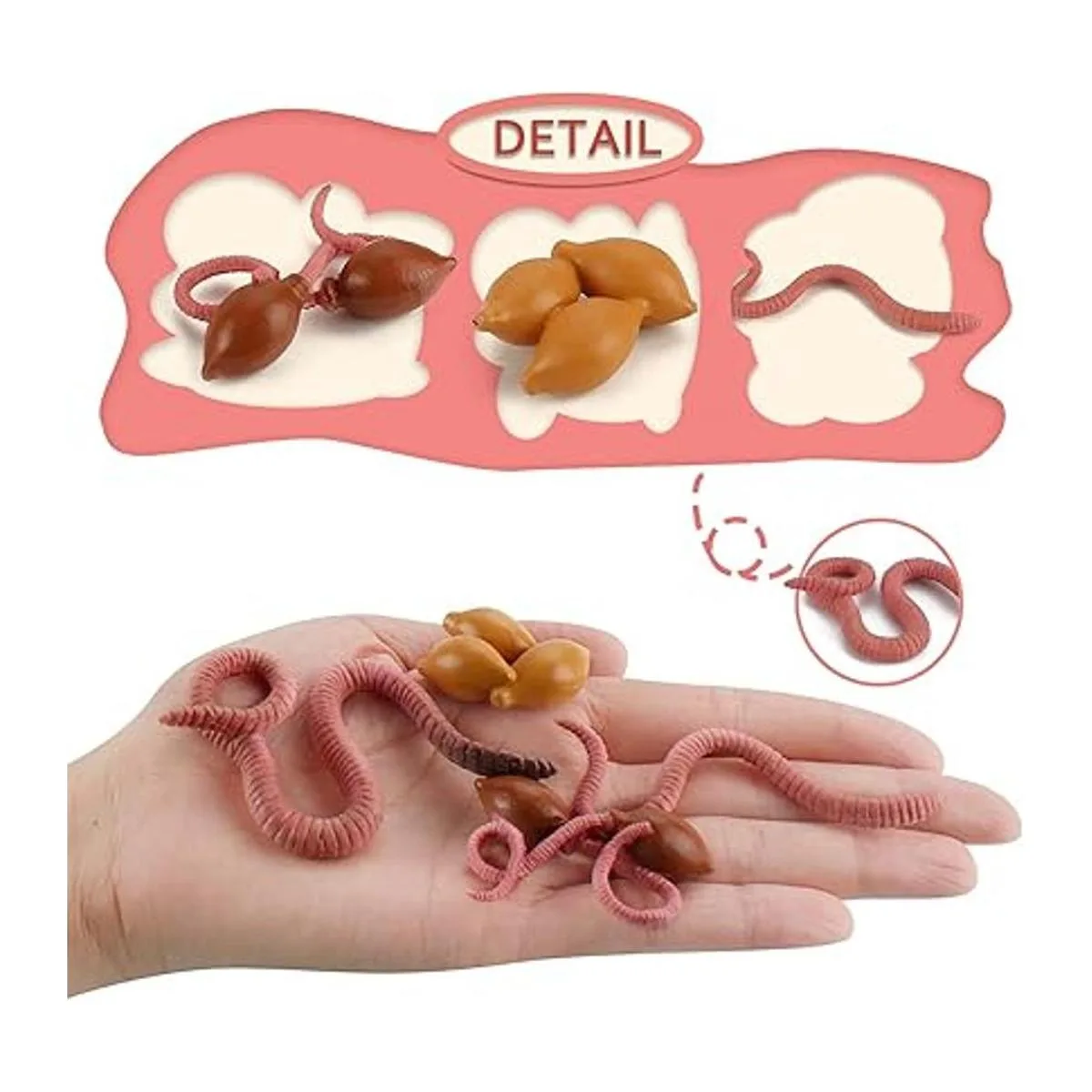 Qué hay dentro: 4 piezas de ciclo de vida de gusanos de tierra, incluyendo espada, gusano de tierra bebé, gusano de tierra joven, gusano de tierra adultos.