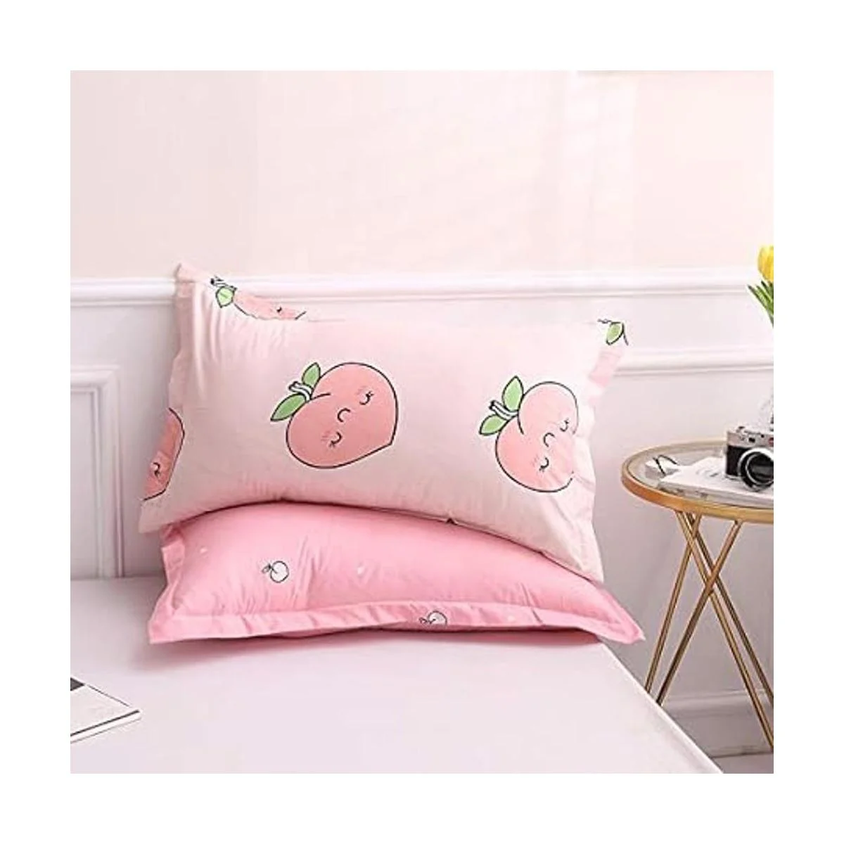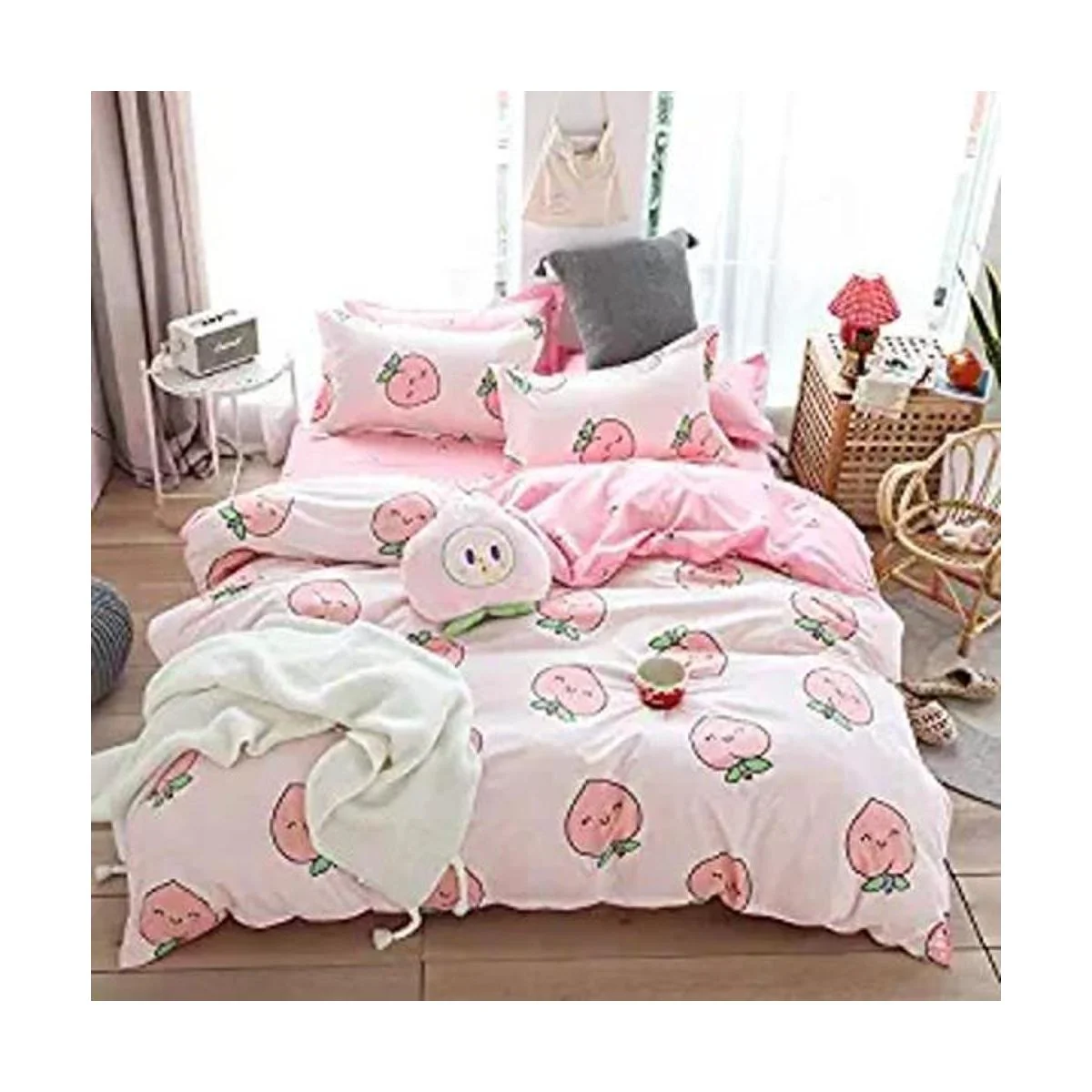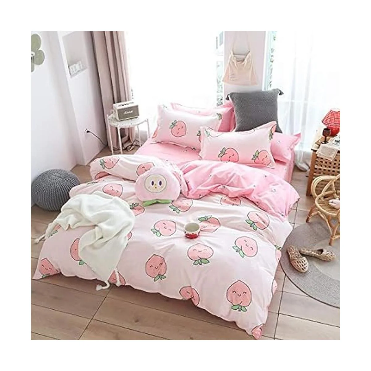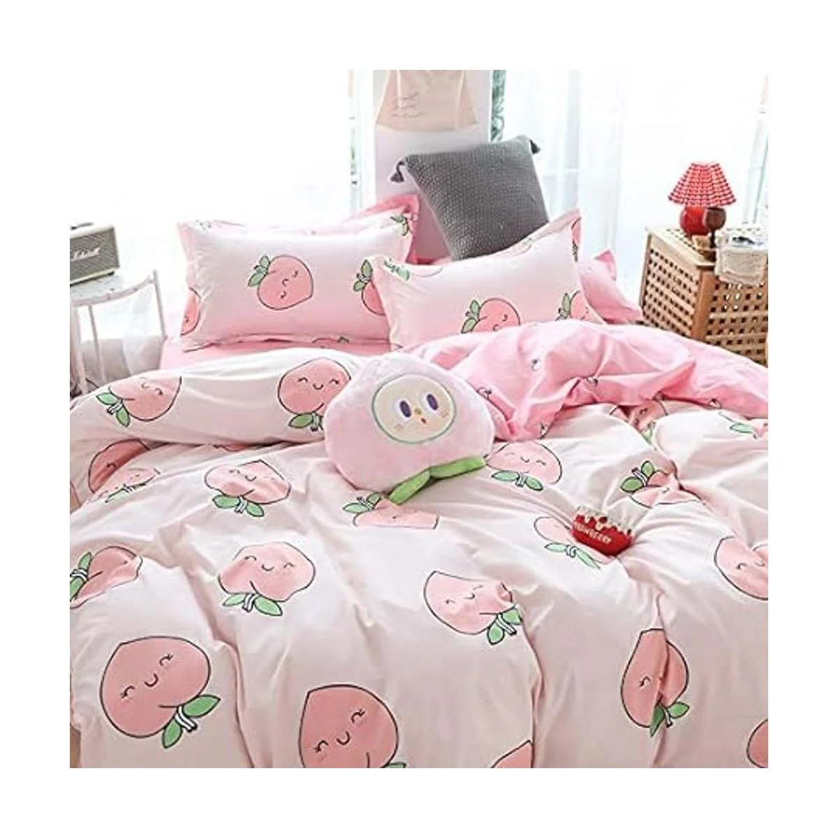 Juego de funda de edredón de dibujos animados, juego de ropa de cama tamaño matrimonial, color durazno rosa, juego de ropa de cama Kawaii para niños, funda de edredón de frutas lindas, ropa de cama de plantas tropicales, reversible, suave, decoración de habitación