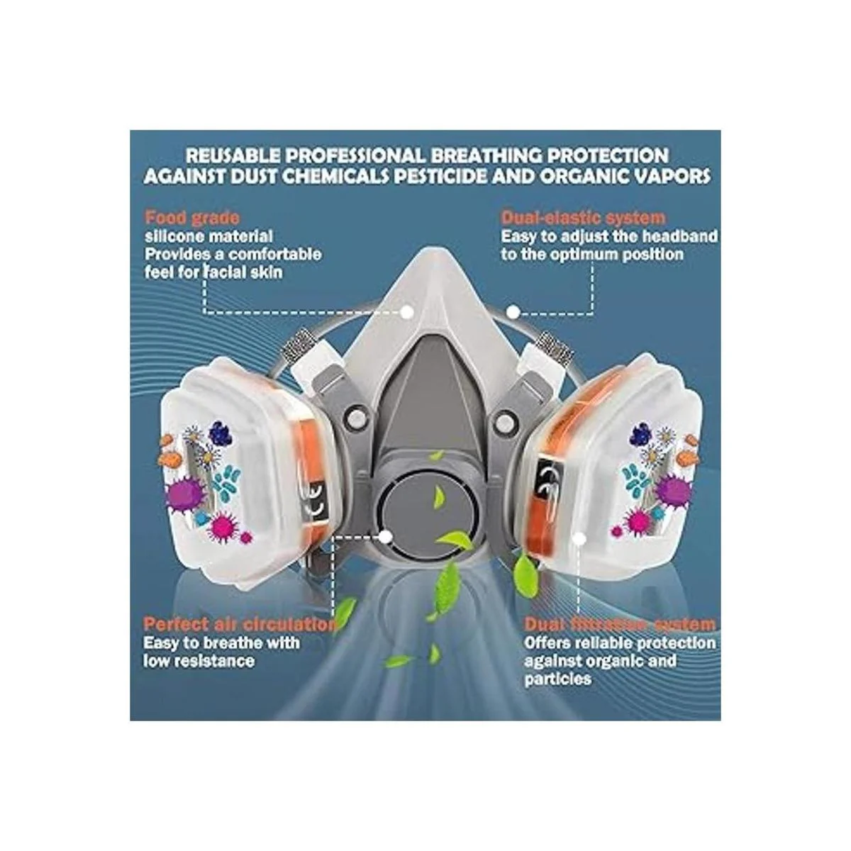 Calidad superior: hecha de gel de sílice de alta calidad, la mitad facial no es tóxica, suave, cómoda, duradera, segura y saludable. Eliminará eficazmente cualquier toque de vapor químico orgánico o humos una vez que se use