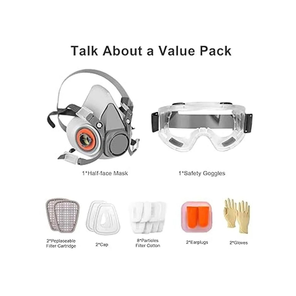 Servicio satisfactorio: el paquete incluye: 1 máscara de media cara, 8 filtros de algodón, 2 gorras, 1 gafas de seguridad, 1 par de guantes, 2 tapones para los oídos. Estamos comprometidos a garantizar que estés 100 satisfecho. Si tienes alguna pregunta, ponte en contacto con nosotros directamente. Proporcionaremos un gran soporte posventa.