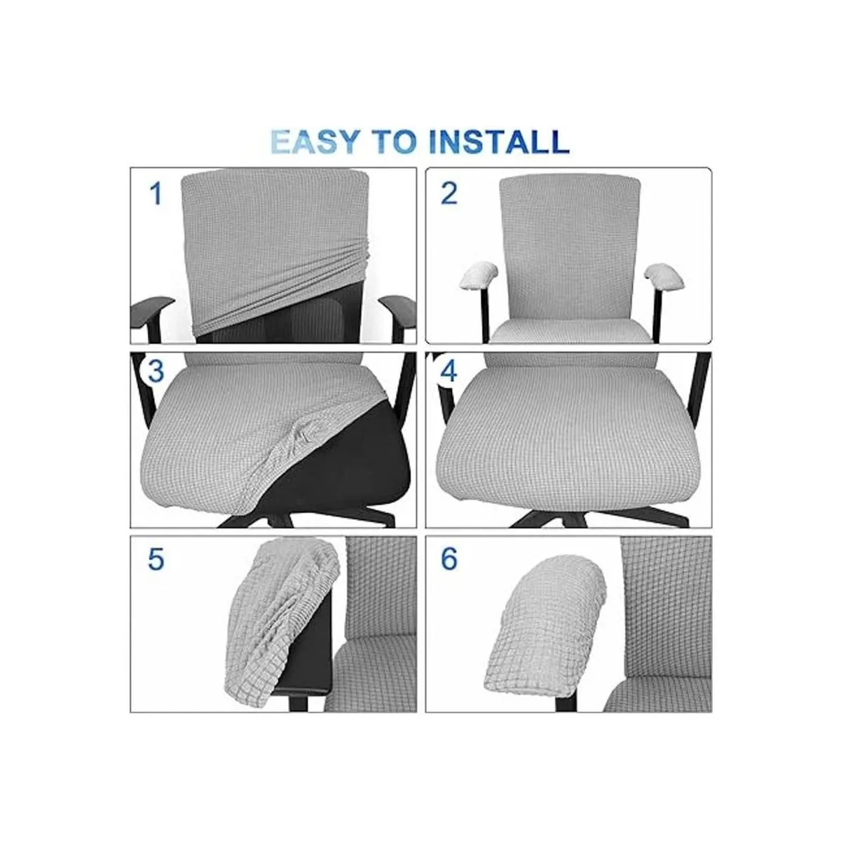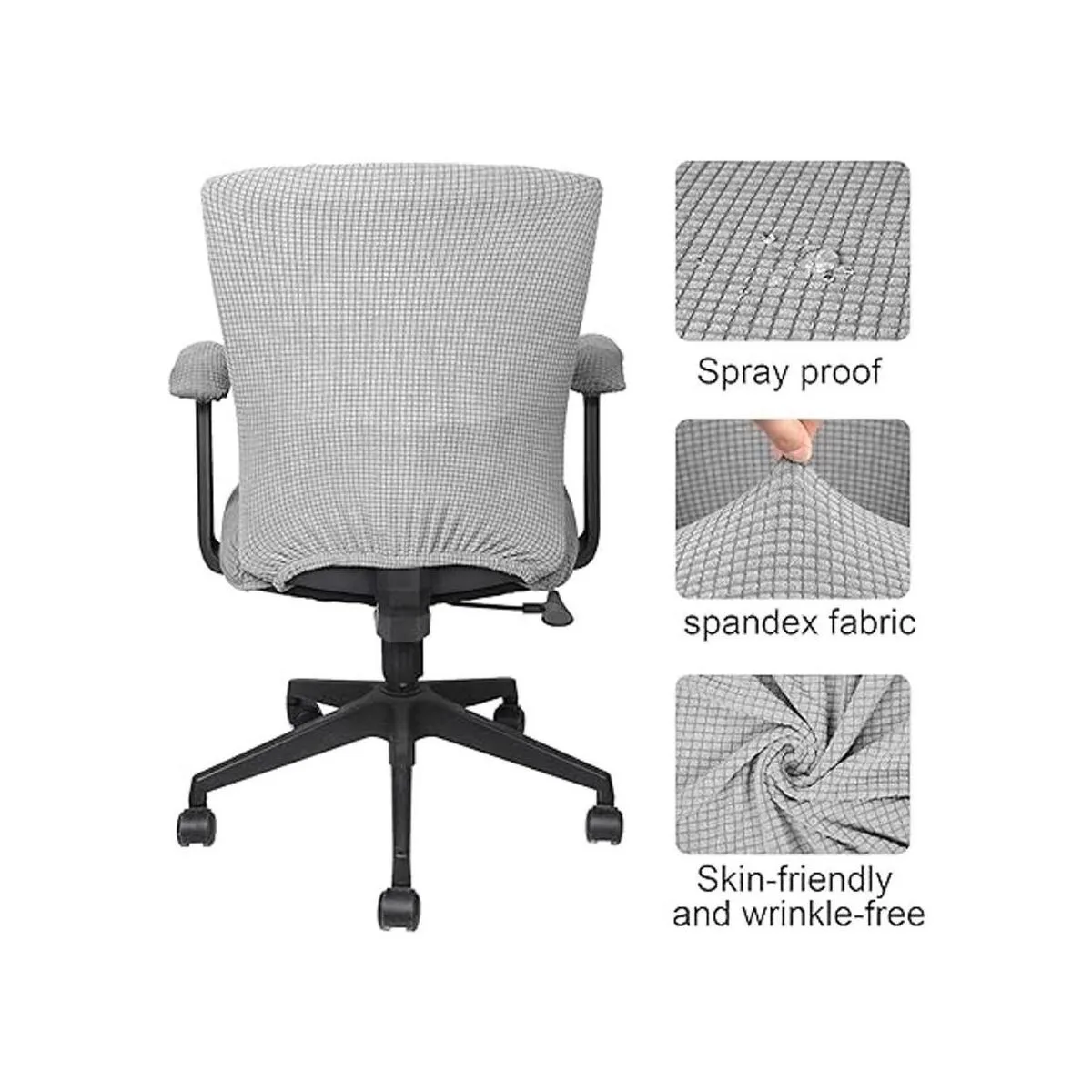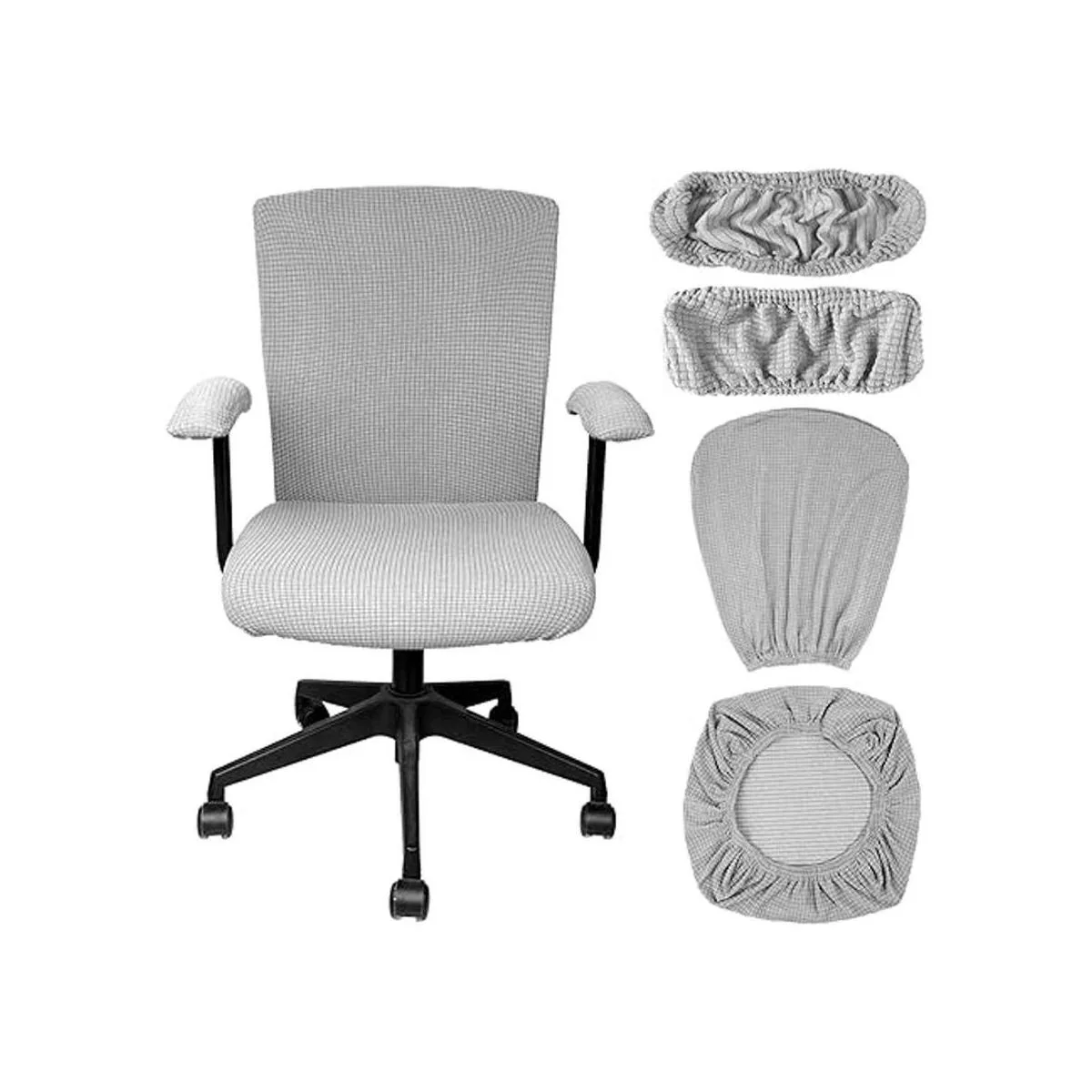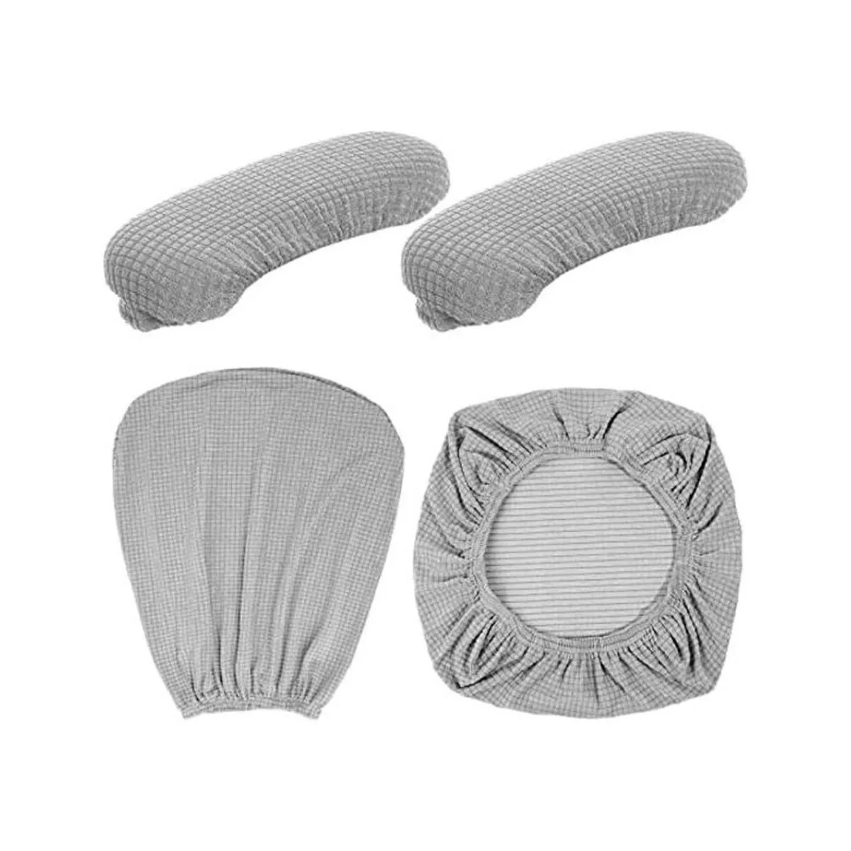 Juego de fundas protectoras universales para sillas de oficina y computadora, fundas de asiento elásticas para sillas de escritorio, fundas para reposabrazos para sillas giratorias de jefe gris plateado, 4 piezas