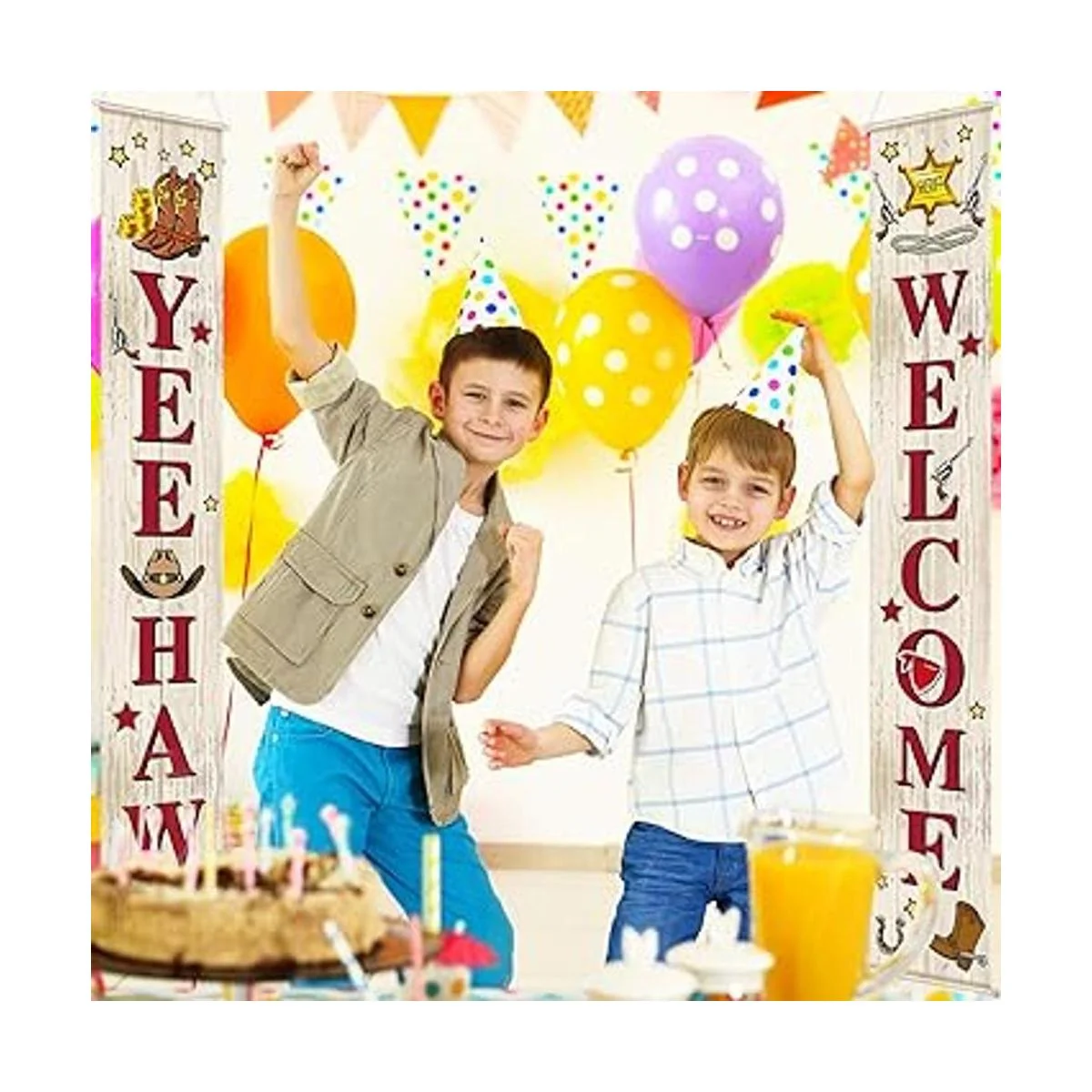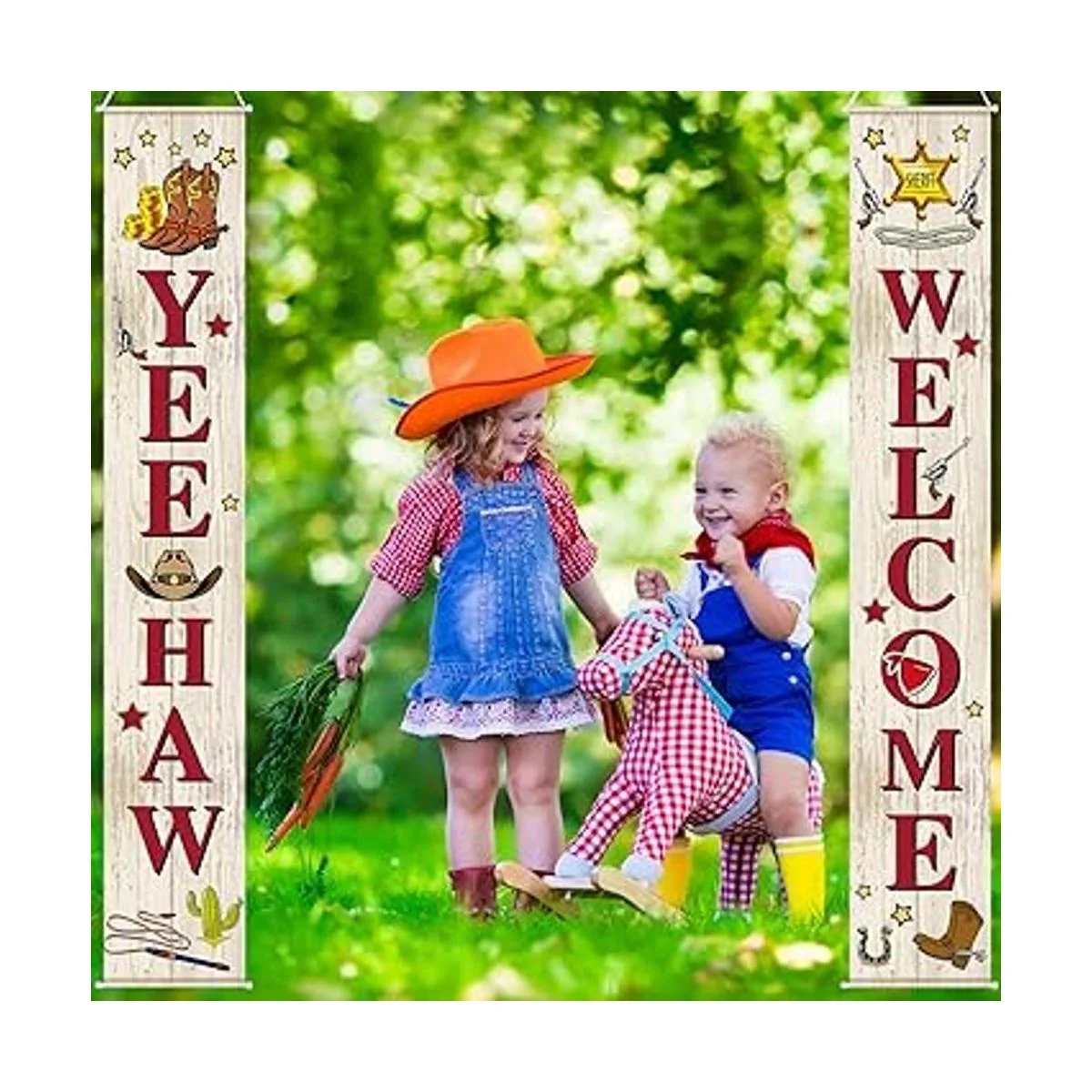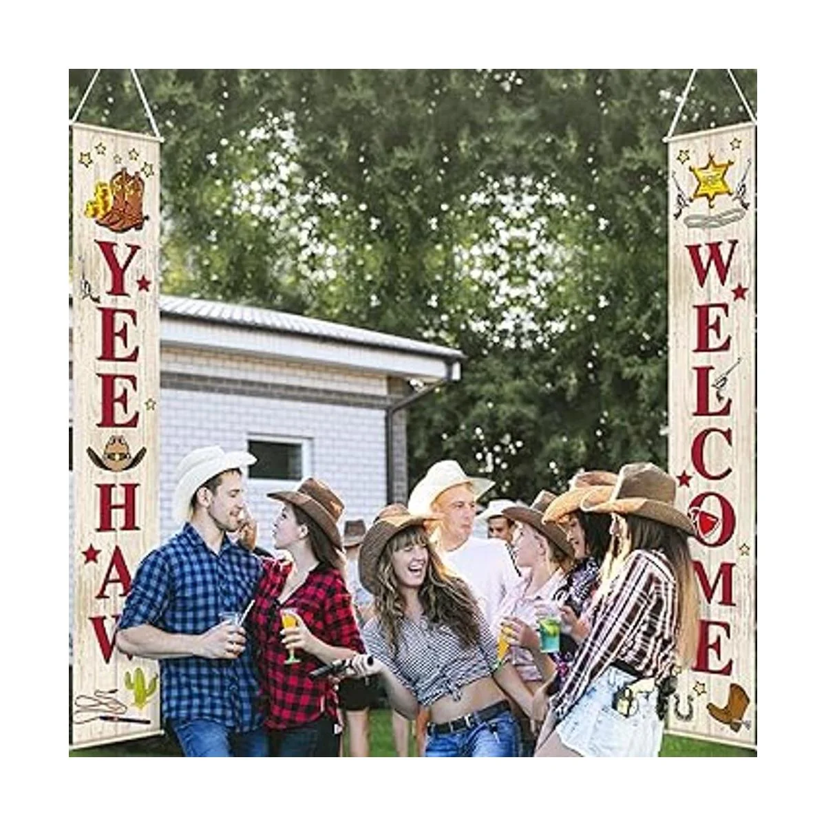Juego de pancarta de decoración de vaquero: pancarta Welcome, 12 x 72 pulgadas largo x ancho, pancarta Yee Haw, 12 x 72 pulgadas largo x ancho, apto para fiestas temáticas occidentales como un acogedor letrero de puerta delantera o decoración de fiesta, decoraciones de fiesta de vaquero
