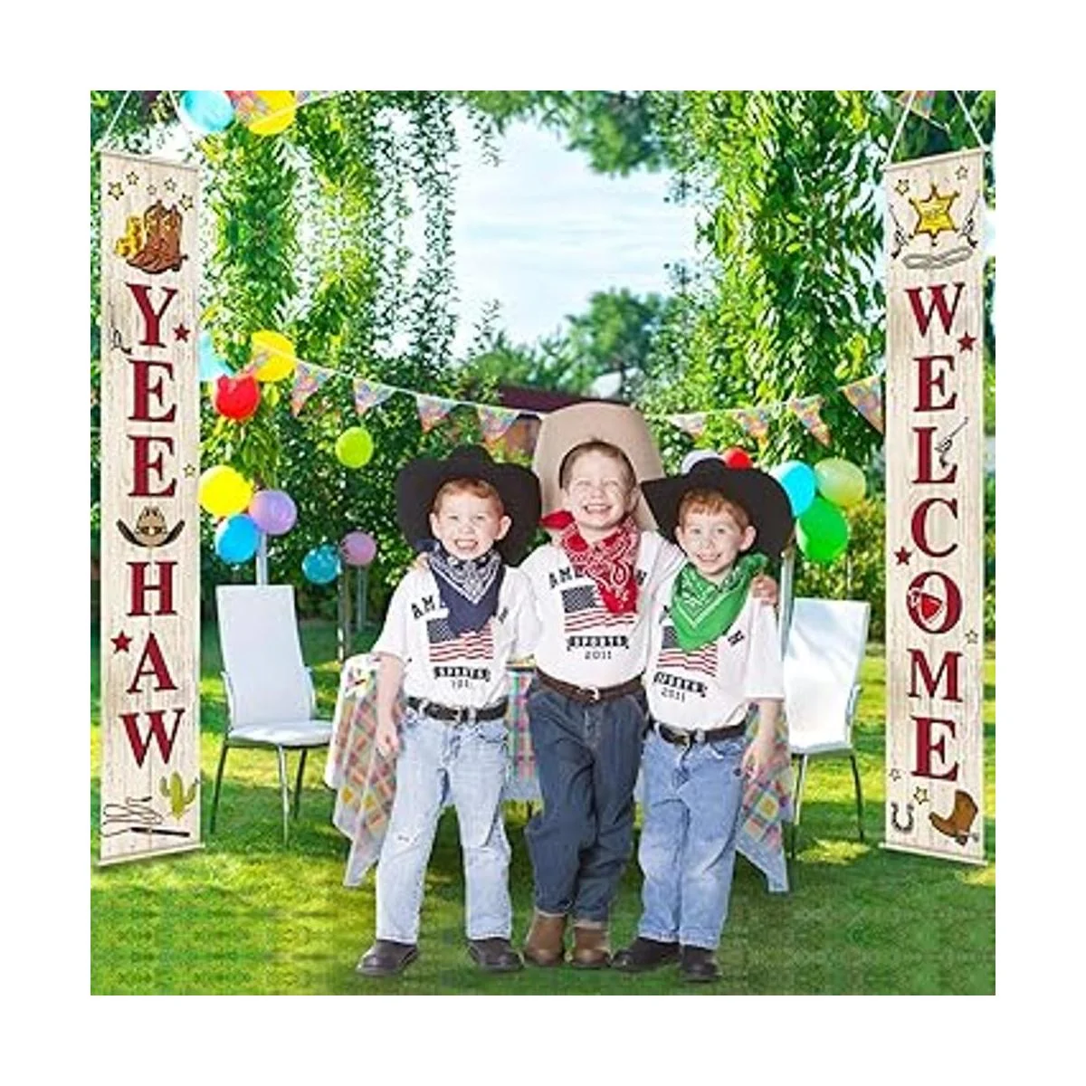 Hermoso letrero de vaquero: sirve como hermosas decoraciones de fiesta occidental para fiesta occidental/desfile, diseñado con botas, sombrero de vaquero, sheriff, patrones de bandana