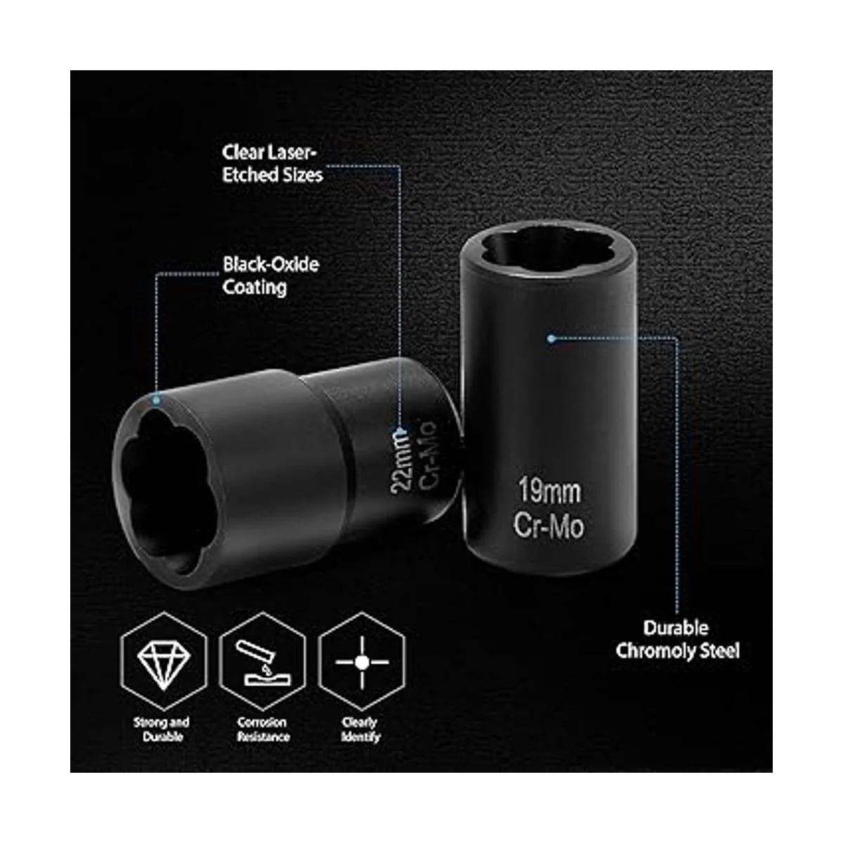 Juego de herramientas de enchufe giratorio, juego de extractores de tuercas y pernos de 12 pulgadas, kit de herramientas para quitar tuercas y tuercas de lengeta redondeada