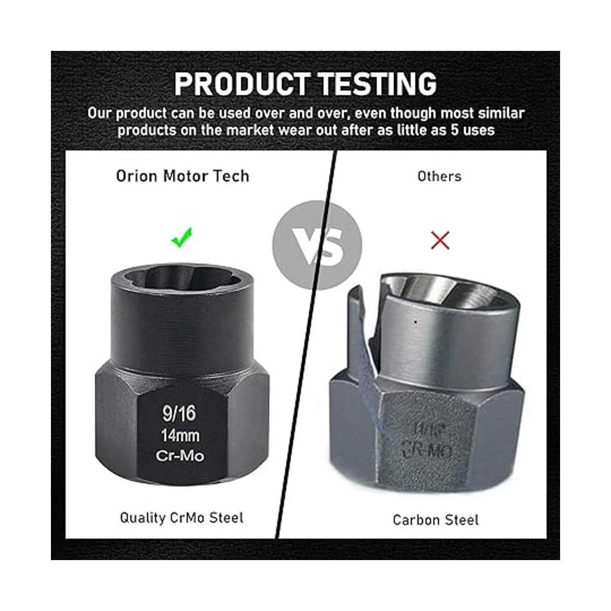 13 tamaños métricos y SAE: este juego de herramientas extractoras incluye enchufes métricos y SAE en los tamaños más comúnmente necesarios, todos claramente marcados en cada enchufe: 1/4, 0.315 in, 3/8, 0.394 in, 0.433 in 7/16, 0.472 in, 1/2, 0.512 in, 0.551 in 9/16, 0.630 in 5/5/0.630 in 8, 17 0.669 in, 11/16, 0.748 in 3/4