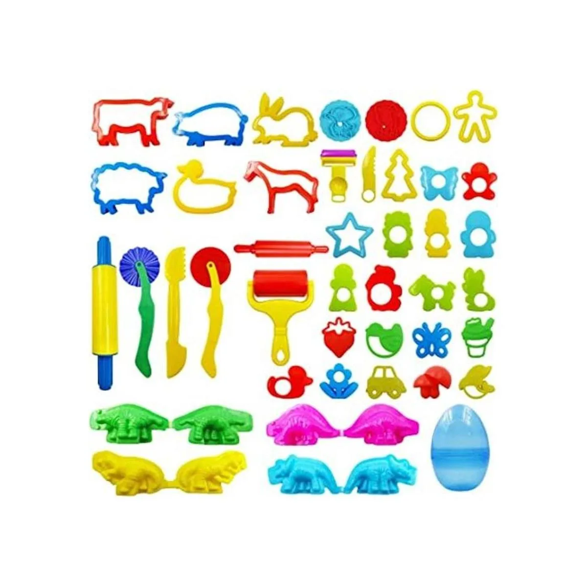 El paquete contiene: 44 herramientas de juego de masa: rodillos de corte, rodillos, moldes de animales, cortadores, sellos, etc.