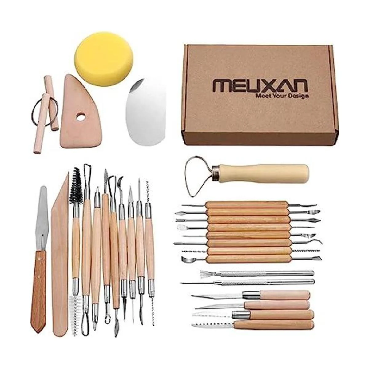 Juego de herramientas Meuxan para escultura y alfarería, Madera, 30 PCS