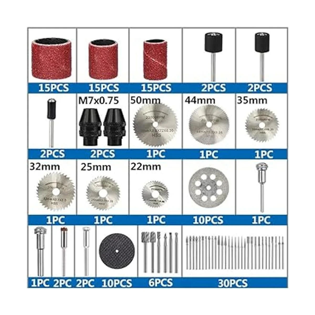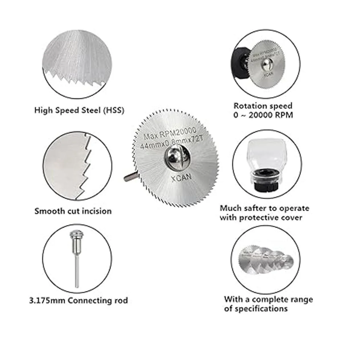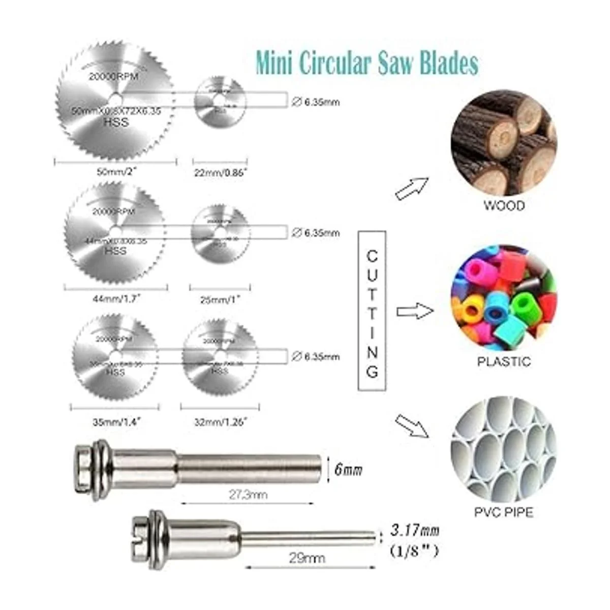 Juego de herramientas rotatorias, 121 hojas de sierra circulares HSS de metal de diamante, ruedas de corte de madera, kit de corte de pulido y lijado