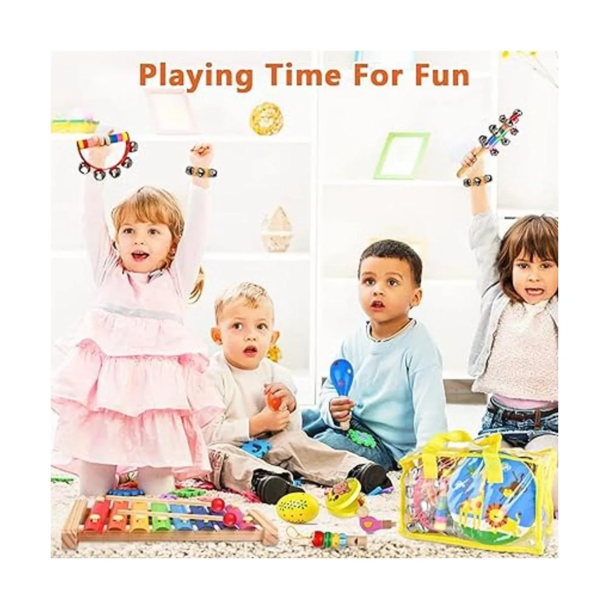 Juego de instrumentos musicales para niños, 20 piezas de agitadores de madera, instrumentos de percusión, pandereta, juguetes de xilófono, juguetes musicales de aprendizaje temprano para niños y niñas, regalos con bolsa de transporte