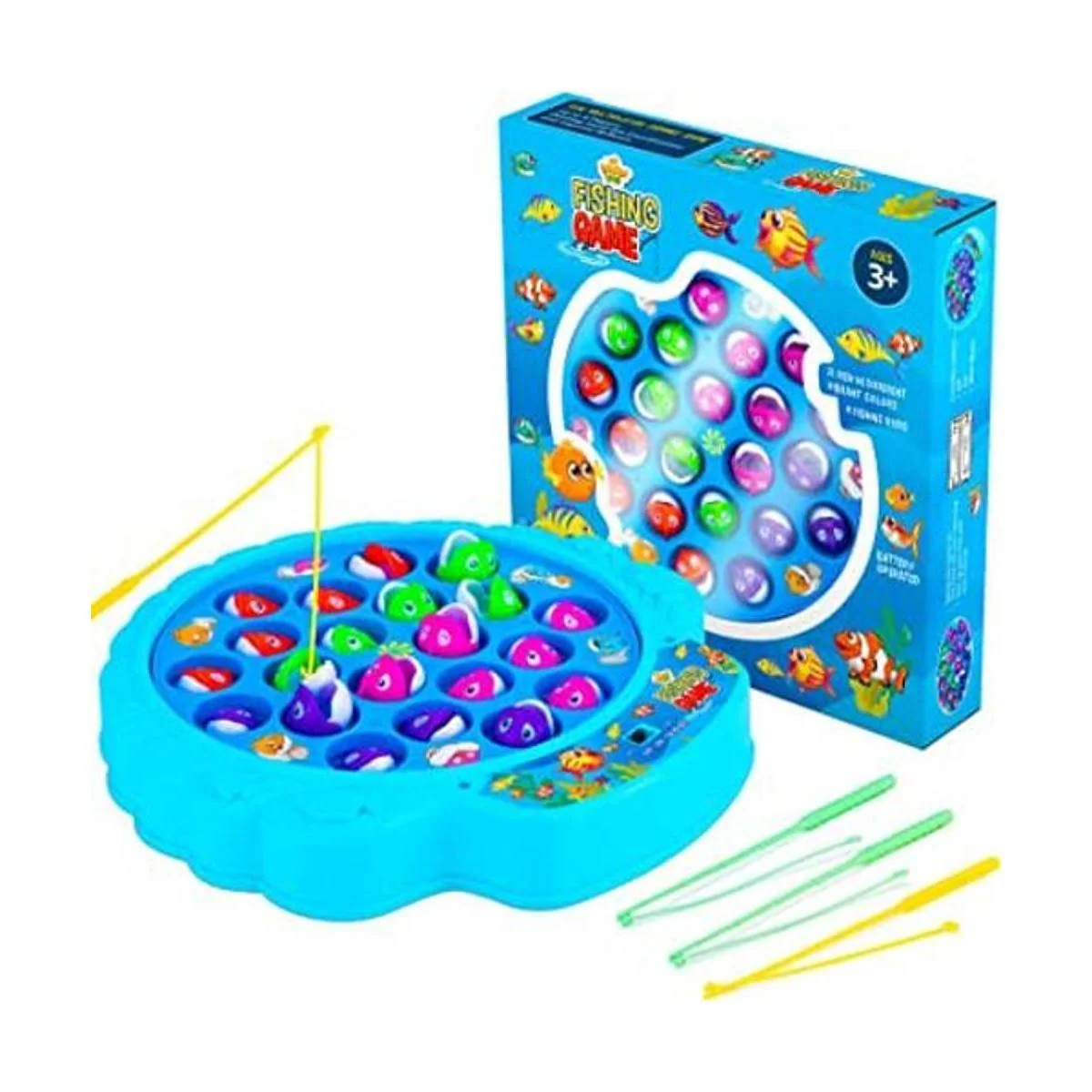 Juego de juego de pesca, 21 peces, 4 postes y tablero giratorio con música de encendido y apagado, juegos de juguetes coloridos para niños y niños pequeños de 3, 4, 5, 6, 7 años en adelante, color azul