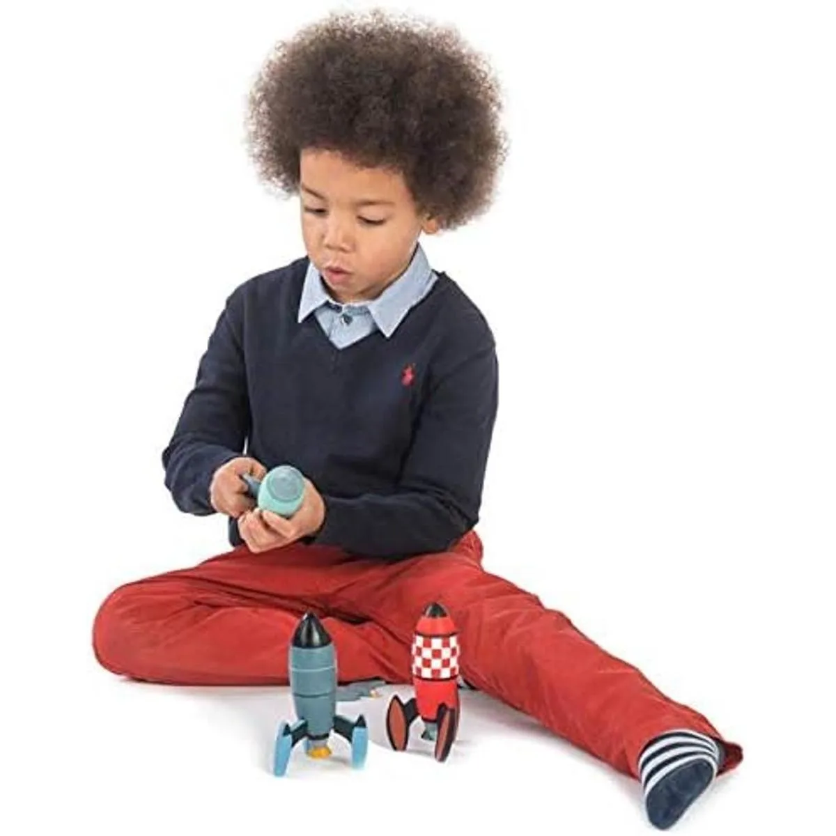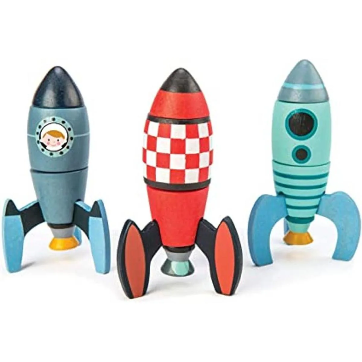 Desarrolla la destreza y la solución de problemas: tu hijo tiene que colocar las piezas correctas en el orden correcto para construir estas tres nave espacial Este juego de equilibrio de madera desafía a los niños a desarrollar la destreza y las habilidades de resolución de problemas necesarias para colocar bloques en el cohete derecho.
