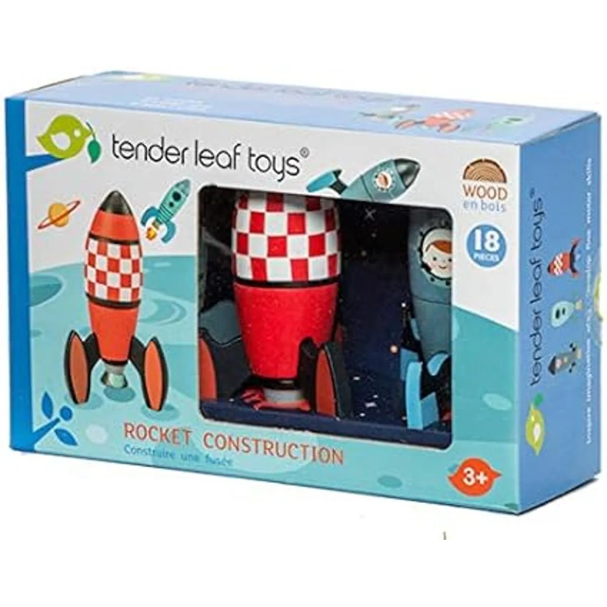 Juego de juguetes de construcción de cohetes 18 piezas de construcción de madera construye 3 barcos de cohetes fabricado con materiales de primera calidad y artesanía Desarrolla destreza, resolución de problemas y juego imaginativo A partir de 3 años
