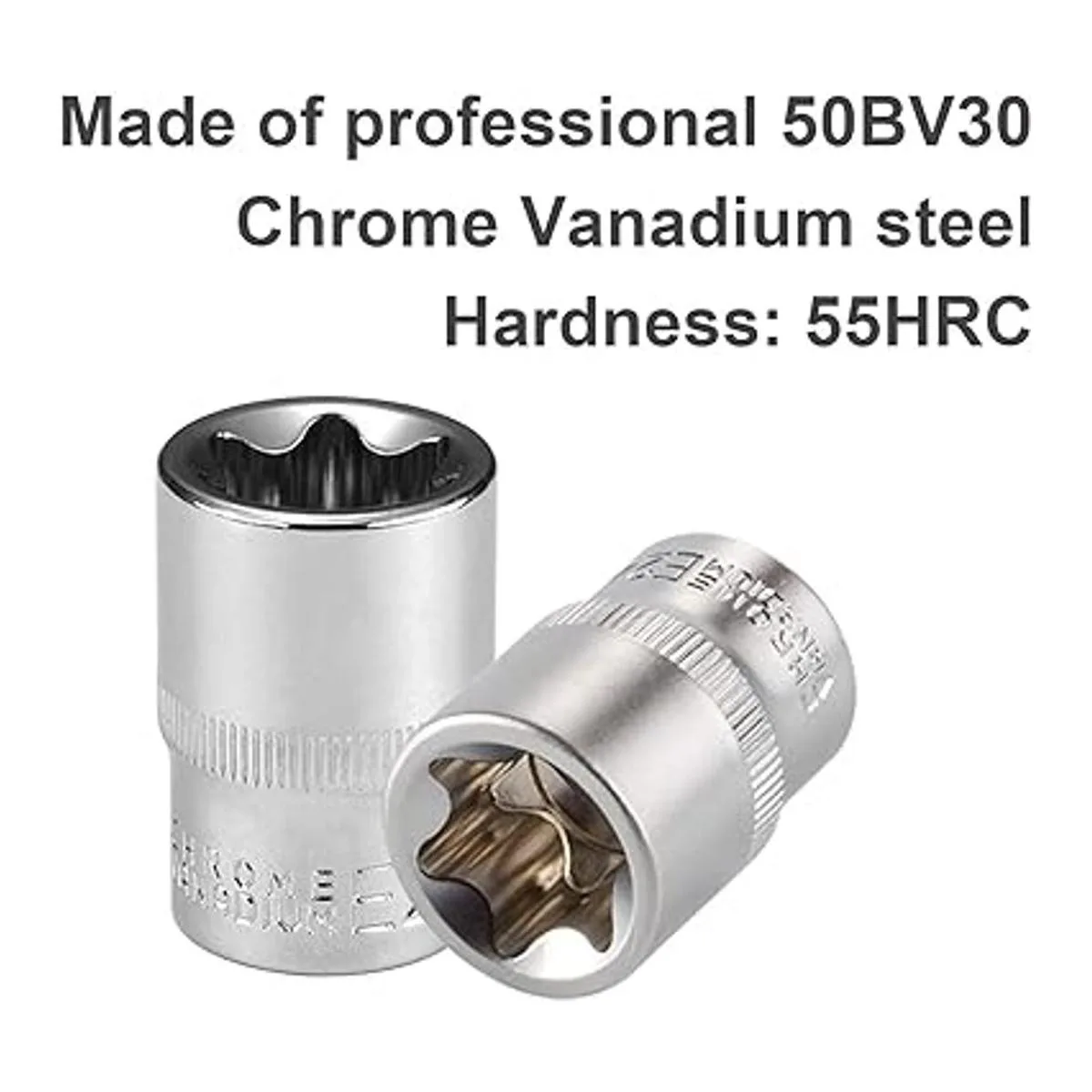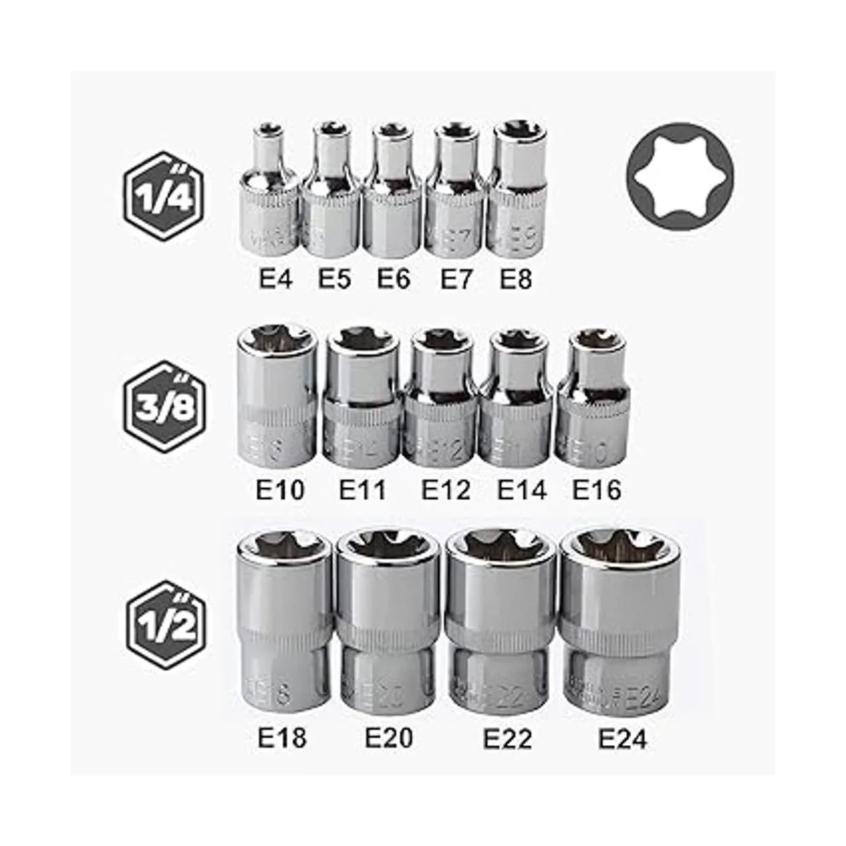 Juego de llaves E Torx hembra 38 12 14 unidad E4 E24 kit de enchufe de torque externo de estrella, 14 piezas