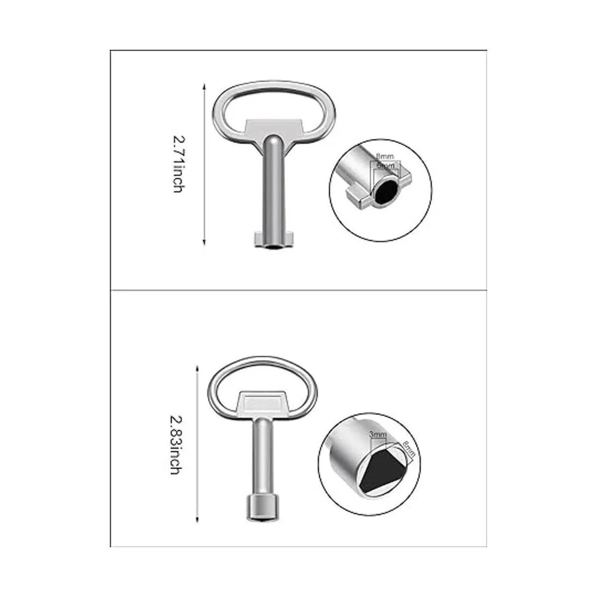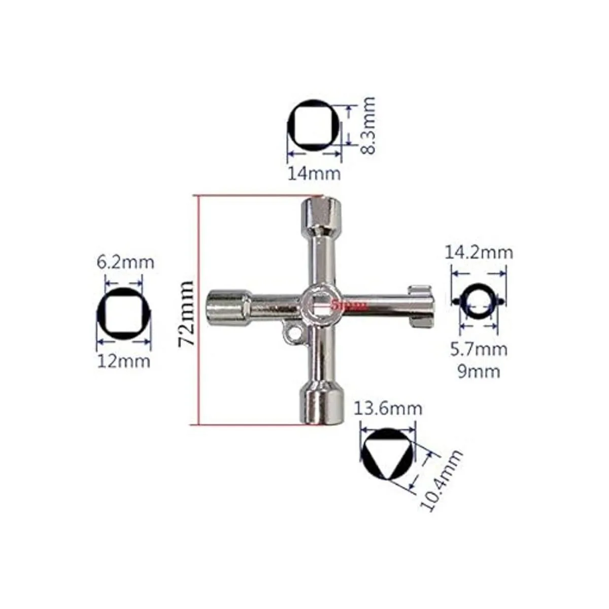 4 llaves de utilidad: llaves multifuncionales con 4 agujeros, 2 formas cuadradas, 1 triángulo y 1 llave redonda, se puede aplicar a electricidad, agua, gas, tren, armario, ascensor, etc. También sirve como llave práctica y gira los tornillos.
