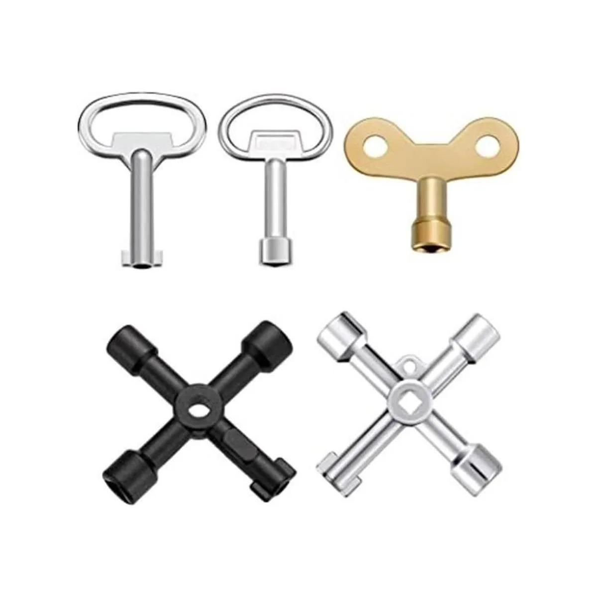 Juego de llaves multifuncionales para fontaneros, llaves triangulares llave cruzada de servicio de 4 vías llaves de agua para radiadores de gas y cajas de medidor eléctrico