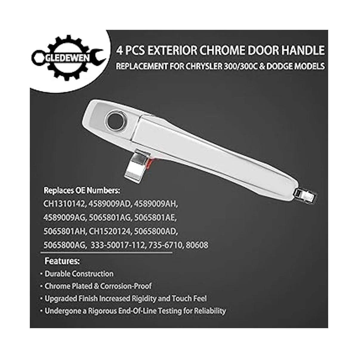 Diseño OEM: con el tiempo, el mango cromado Dodge de fábrica falla y puede ser molesto de arreglar. Este mango lateral del pasajero ha sido sometido a rigurosas pruebas para garantizar parámetros de funcionamiento adecuados a las especificaciones de fábrica, exactamente diseño OEM para reemplazar tu mango cromado defectuoso