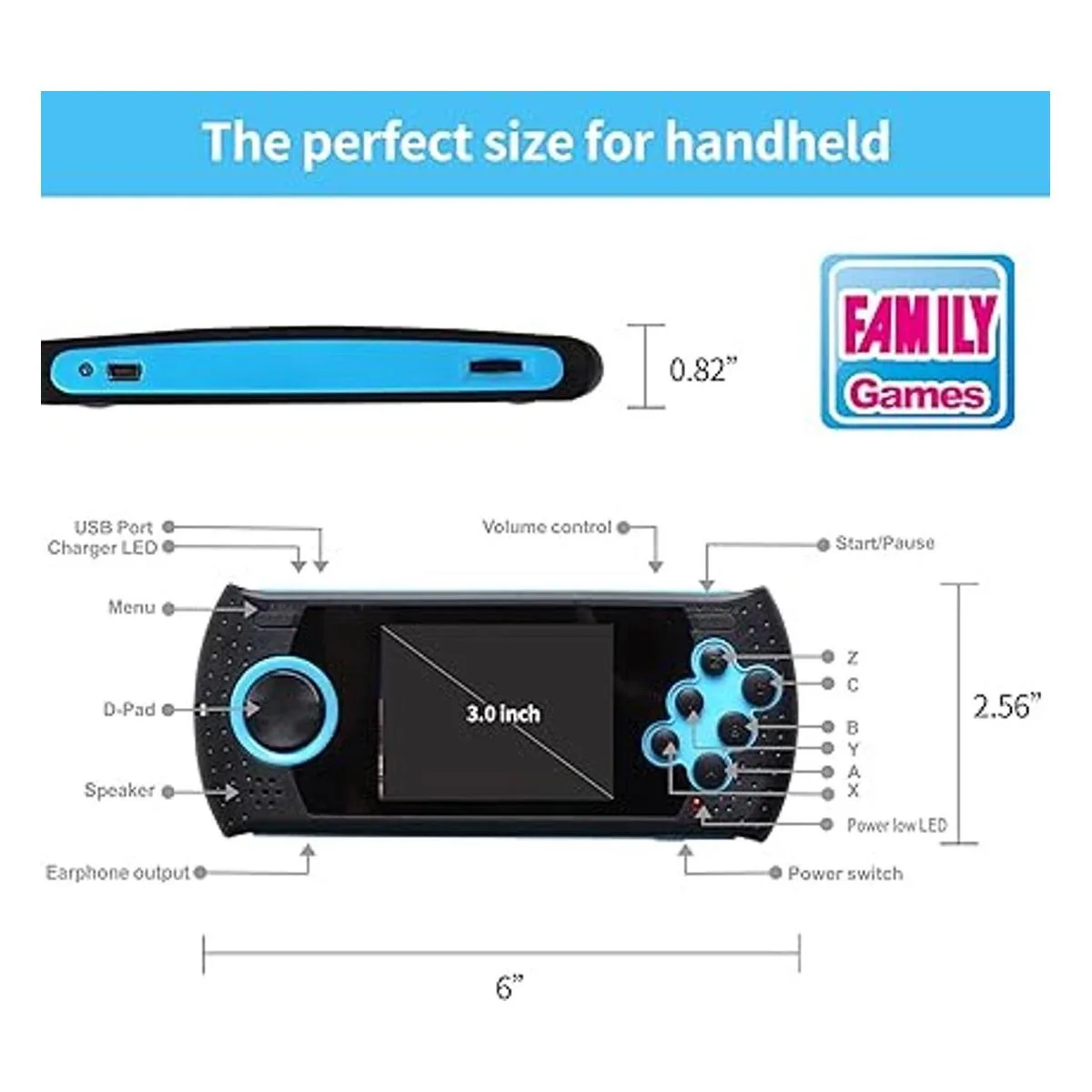Pantalla HD: la pantalla de alta definición de 3.0 pulgadas ofrece una experiencia visual más realista y una mejor protección ocular. Soporte perfecto para auriculares de 0.140 in. Los altavoces de alta calidad dan a los niños una mejor experiencia de juego, pueden ajustar el sonido. Es la elección perfecta para la noche de juego. Puede mejorar la relación entre padres e hijos y crear un buen ambiente familiar.