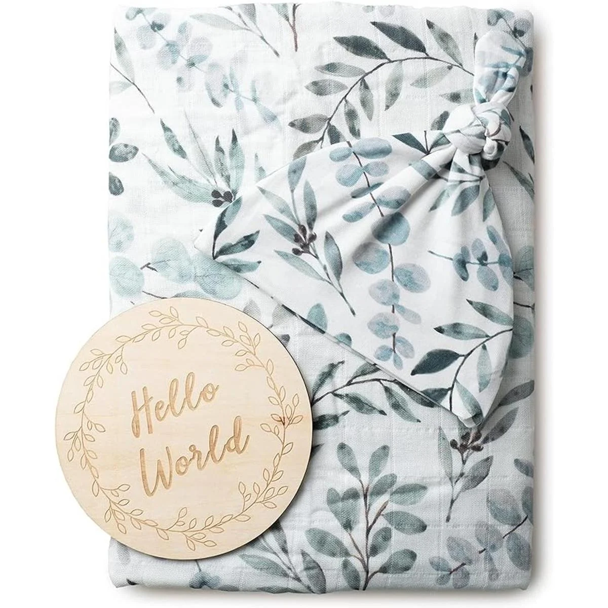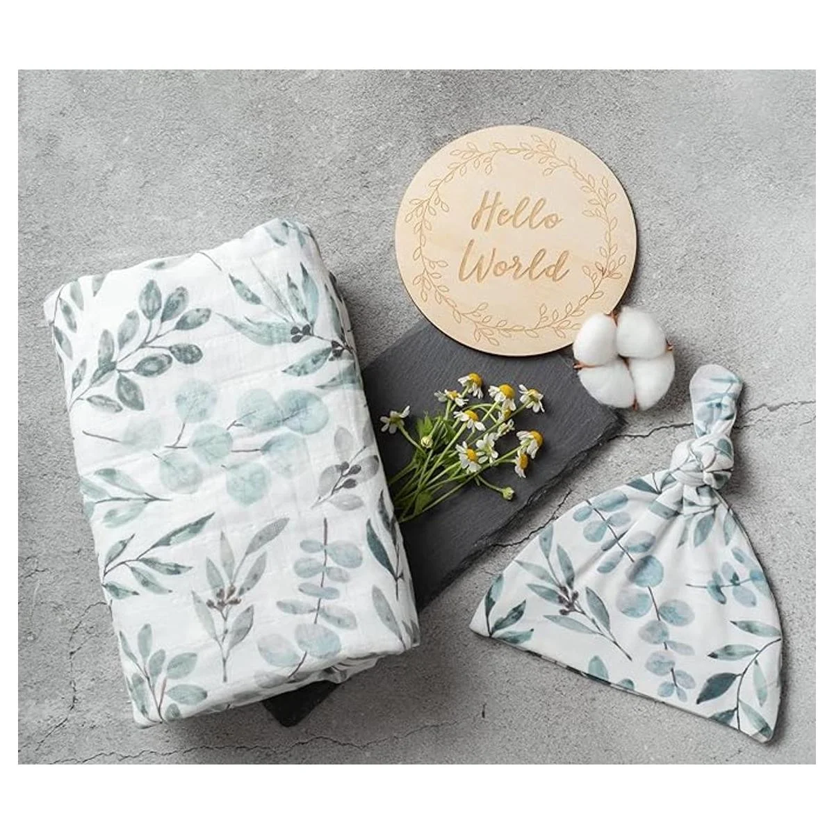 Crea recuerdos que duran: empaquetado en caja lista para regalo, viene con un sombrero/gorro a juego y una tarjeta de anuncio de nacimiento de madera personalizada. Nuestra manta de muselina 100 orgánica es perfecta para regalos de baby shower para nuevos bebés y futuras mamás, especialmente aquellos que aman el estilo natural, bohemio y verde Y es lo mejor para empacar en la bolsa del hospital como manta de recepción para recién nacidos y caída de fotos.