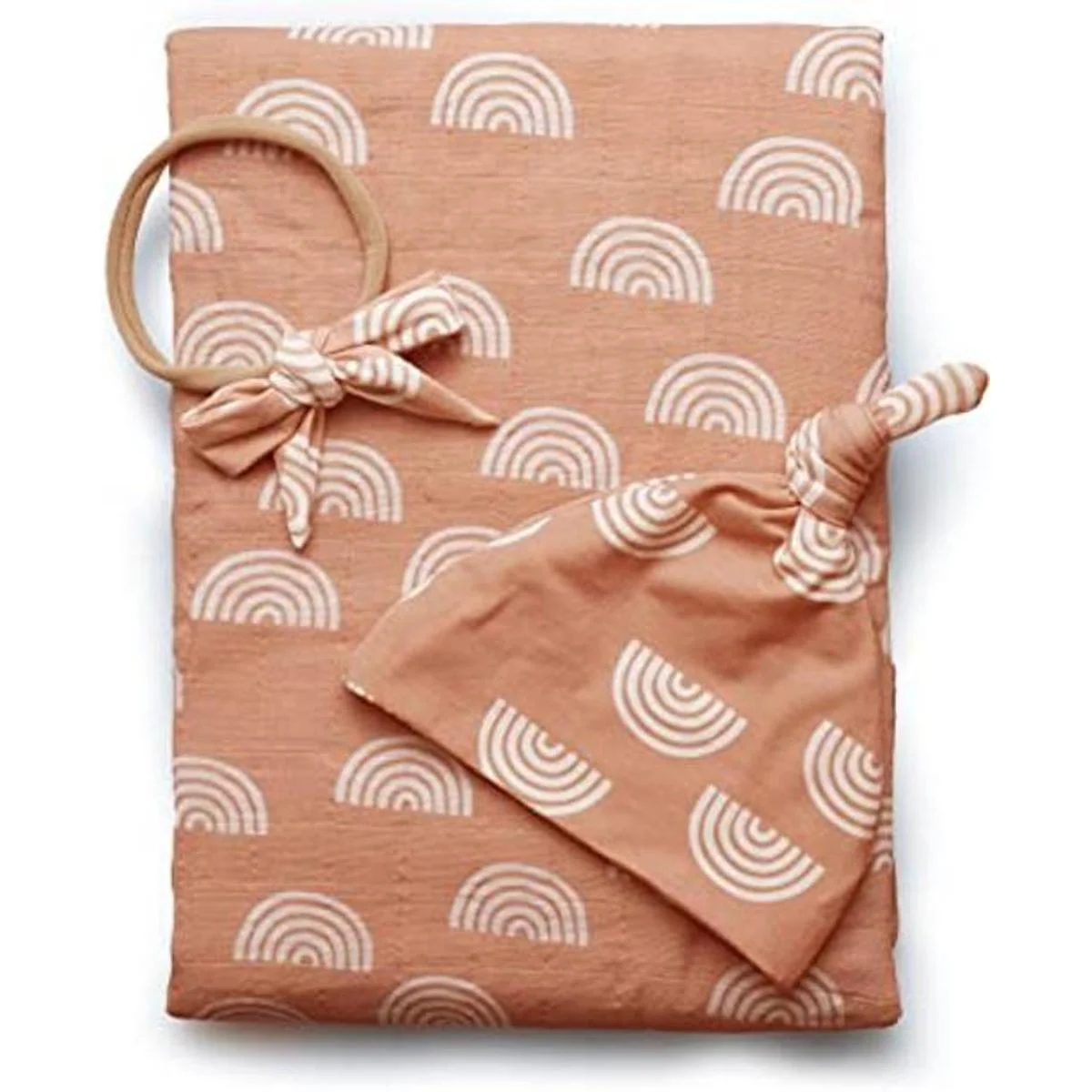 Juego de manta de muselina de algodón 100 orgánico, arco iris caramelo, niña recién nacida, unisex, neutral, bohemio, vintage, arcoíris, lazo a juego,