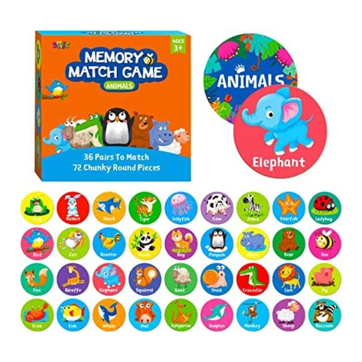 Juego de memoria a juego, 72 tarjetas a juego de animales para niños pequeños, 36 pares de tarjetas de memoria para preescolar de 4, 5, 6 años