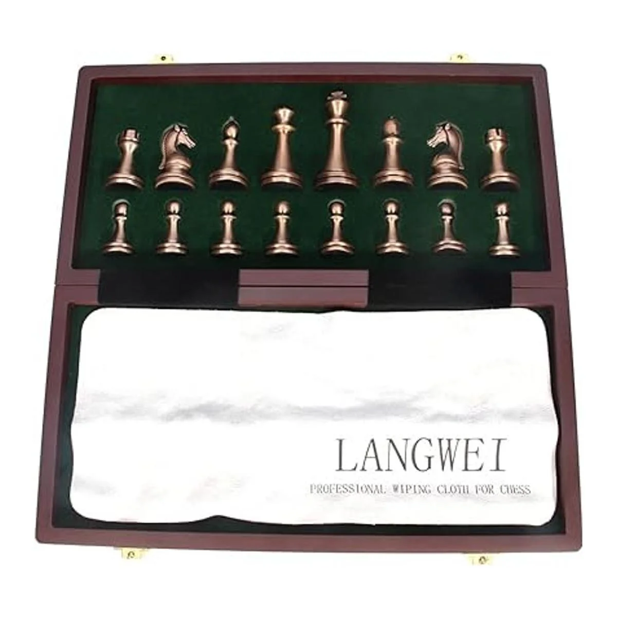 Juego de mesa de ajedrez de metal grande de lujo retro chapado en cobre para adultos, juego de mesa portátil de madera, juego de ajedrez plegable