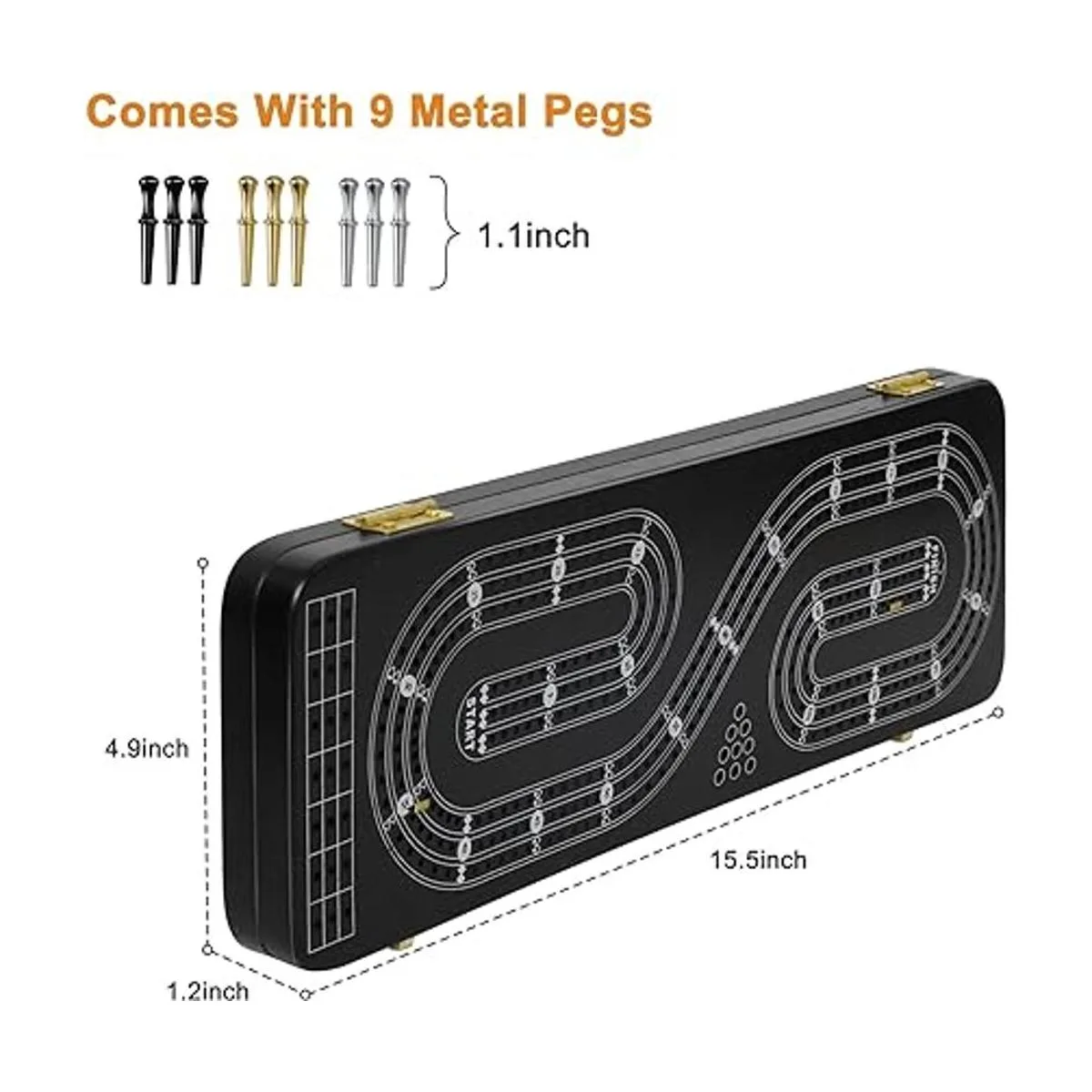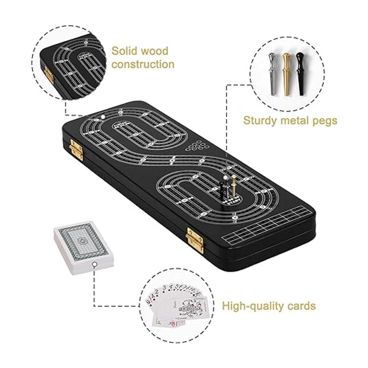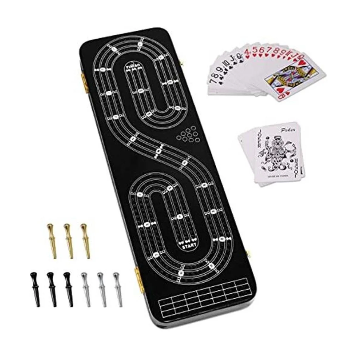 Juego de mesa de cribage, 3 pistas, 2 áreas de almacenamiento, con 9 clavijas de metal, 2 barajas de cartas de juego e instrucciones idioma español no garantizado
