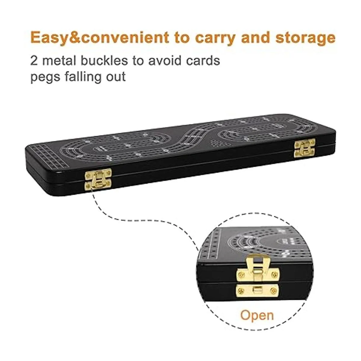 Hebilla de metal portátil: la tabla de cuna tiene una hebilla de metal duradera para proteger el compartimento de almacenamiento interno, lo que permite un almacenamiento fácil y seguro de tarjetas y clavijas de metal cuando no esté en uso. Esto hace que sea fácil de transportar