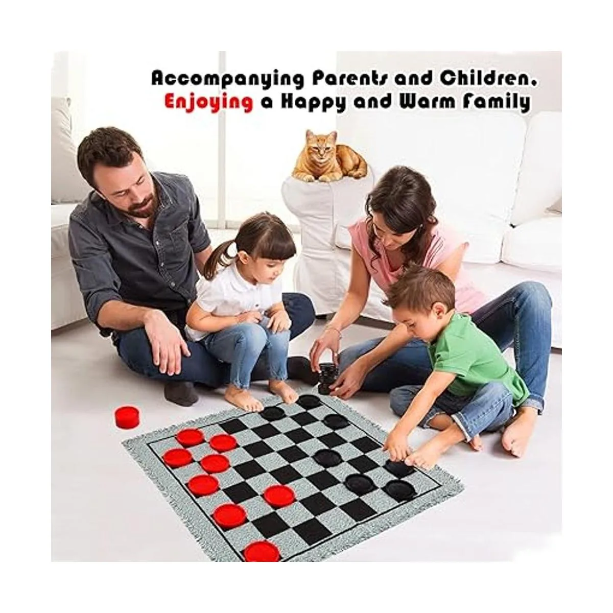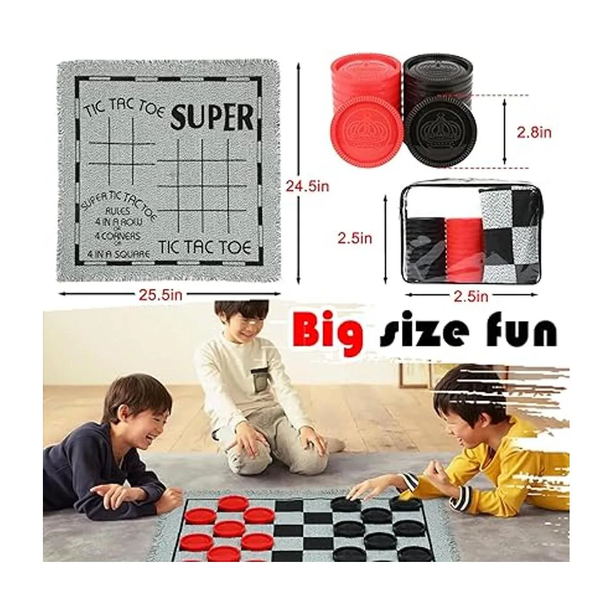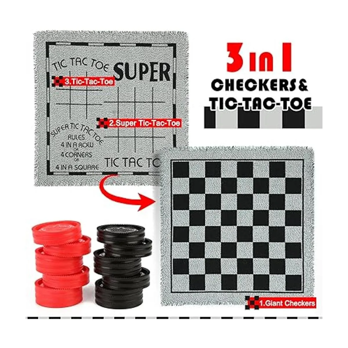 Juego de mesa de cuadros gigantes, 3 en 1 Tic Tac Toe Board Draughts Reversible Juego de alfombra para niños y adultos, tapete de juego de tablero grande de cuadros, juego de patio interior y exterior para fiesta de camping familiar