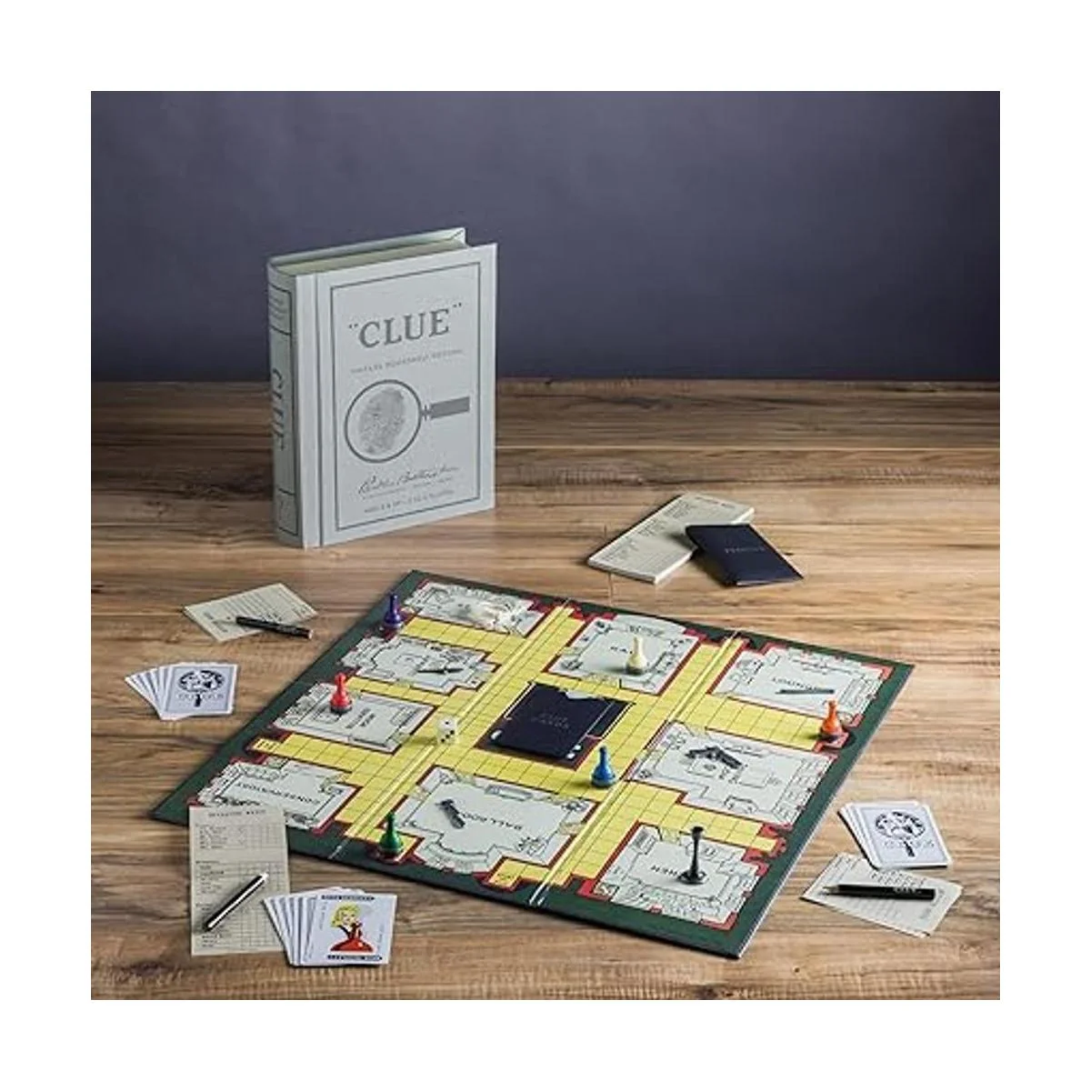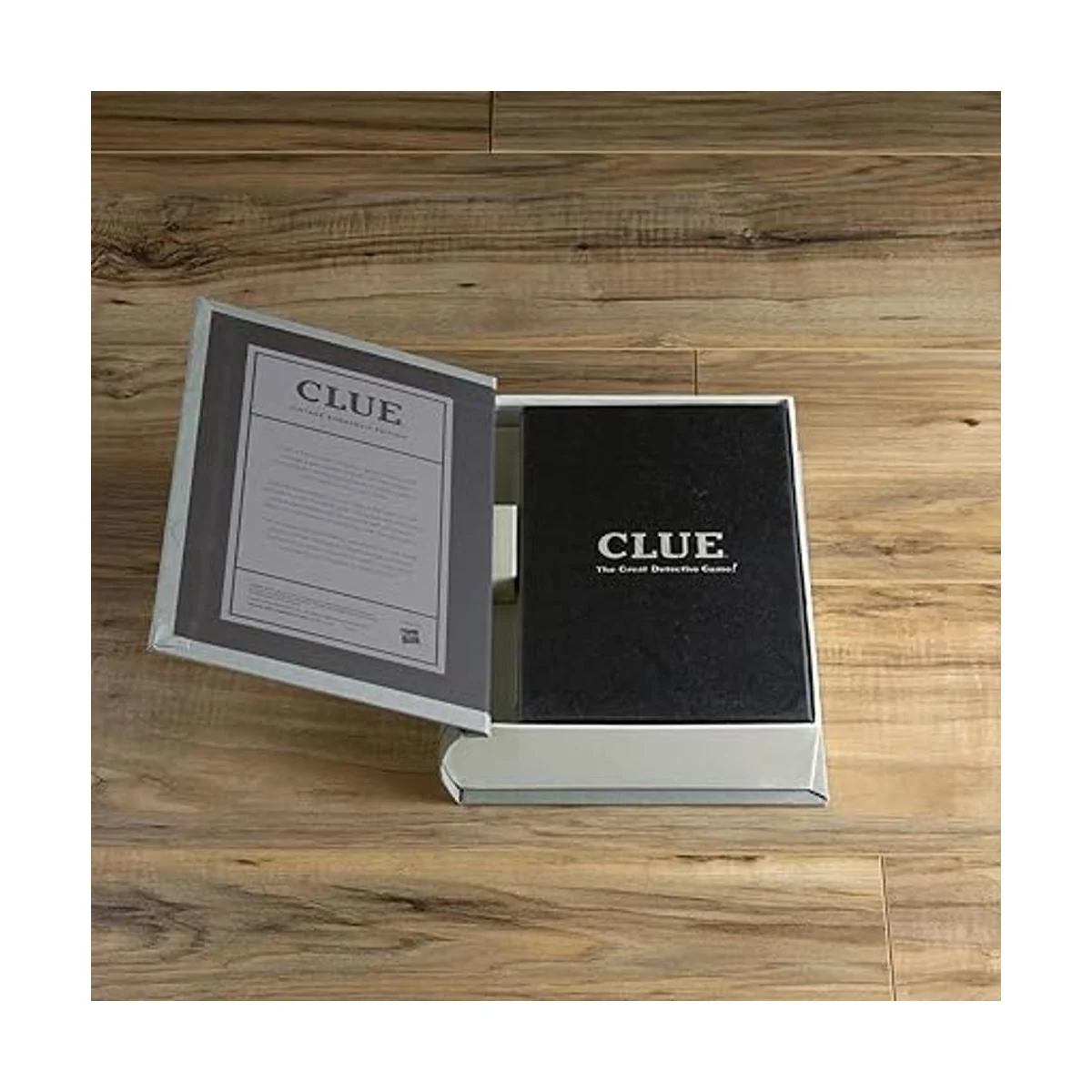 Juego de mesa de edición clásica, vintage. Libro de pistas de lino.
