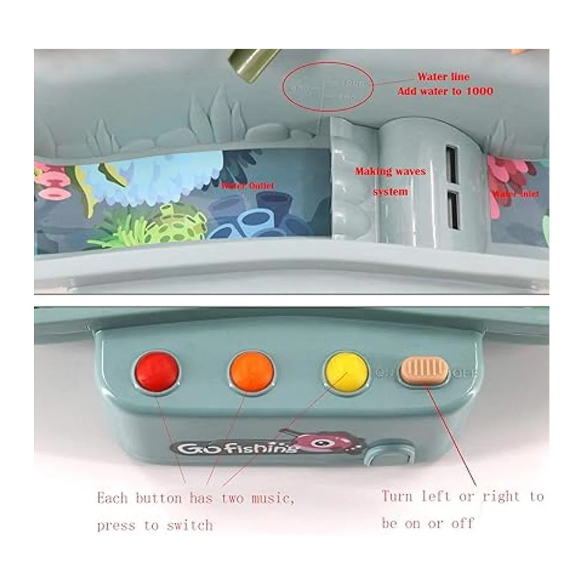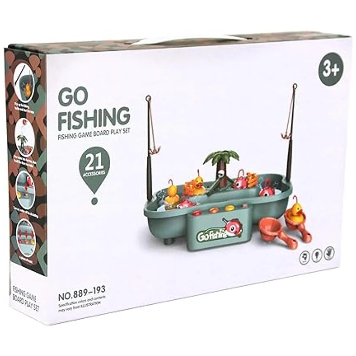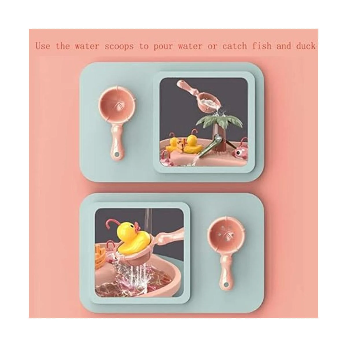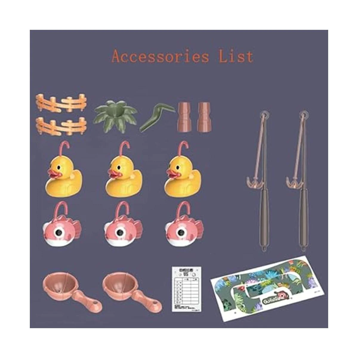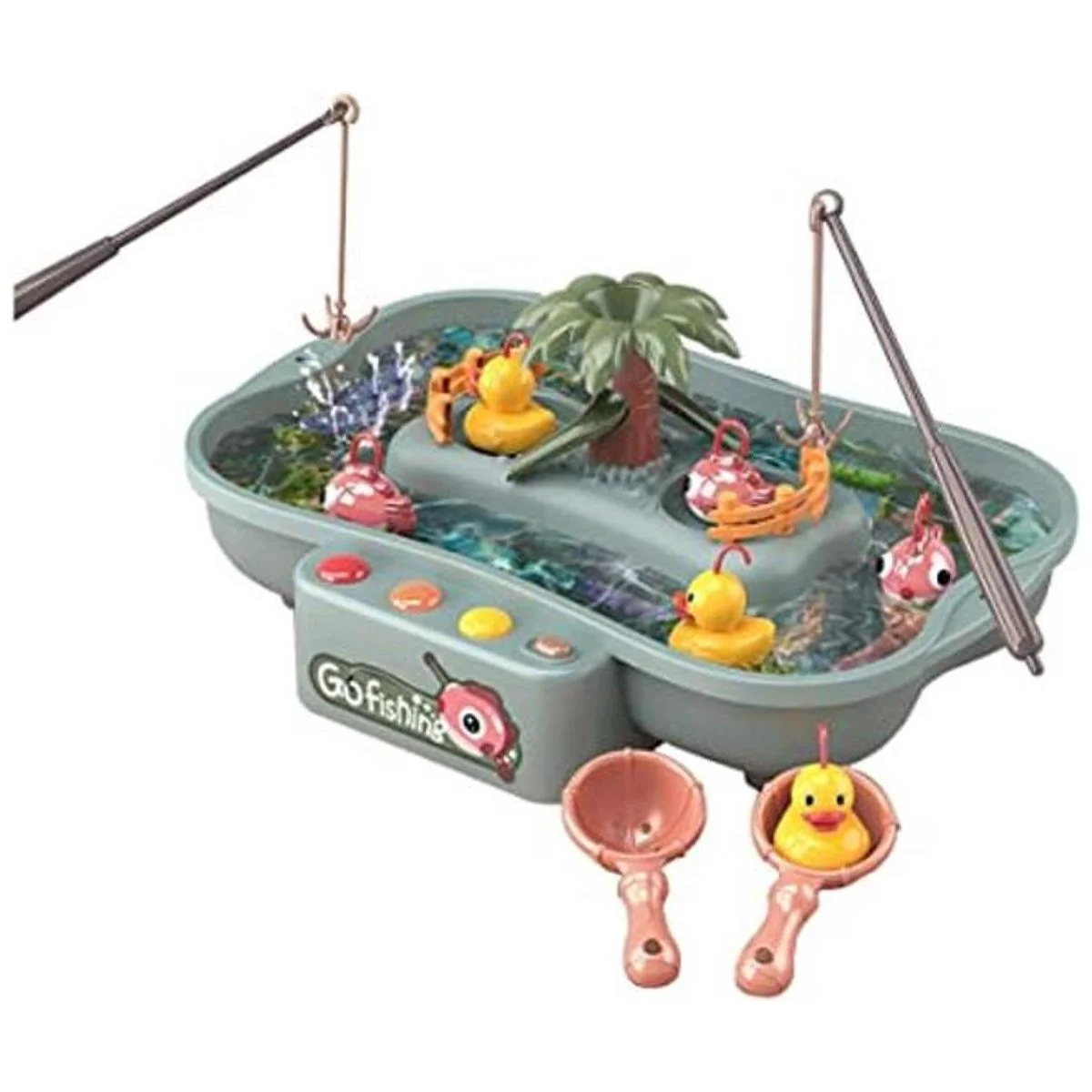 Juego de mesa de pesca de circulación de agua Lovyan con 3 patos, 3 peces, 2 cucharones de agua y 2 bastones de pesca, juego electrónico de pesca de juguete con 6 música para niños pequeños