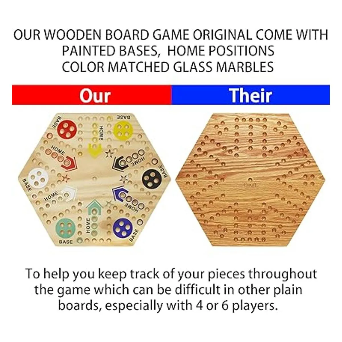 Nuestro juego de mesa de madera original viene con bases pintadas individualmente, posiciones para el hogar, y tiene canicas de color a juego para ayudarte a mantener un seguimiento de tus piezas durante todo el juego, lo que puede ser difícil en otros tableros lisos, especialmente con 4 o 6 jugadores. Lee nuestro manual de instrucciones incluido para no perderte ninguna de las reglas de nuestro juego de mesa de pista rápida mientras juegas.
