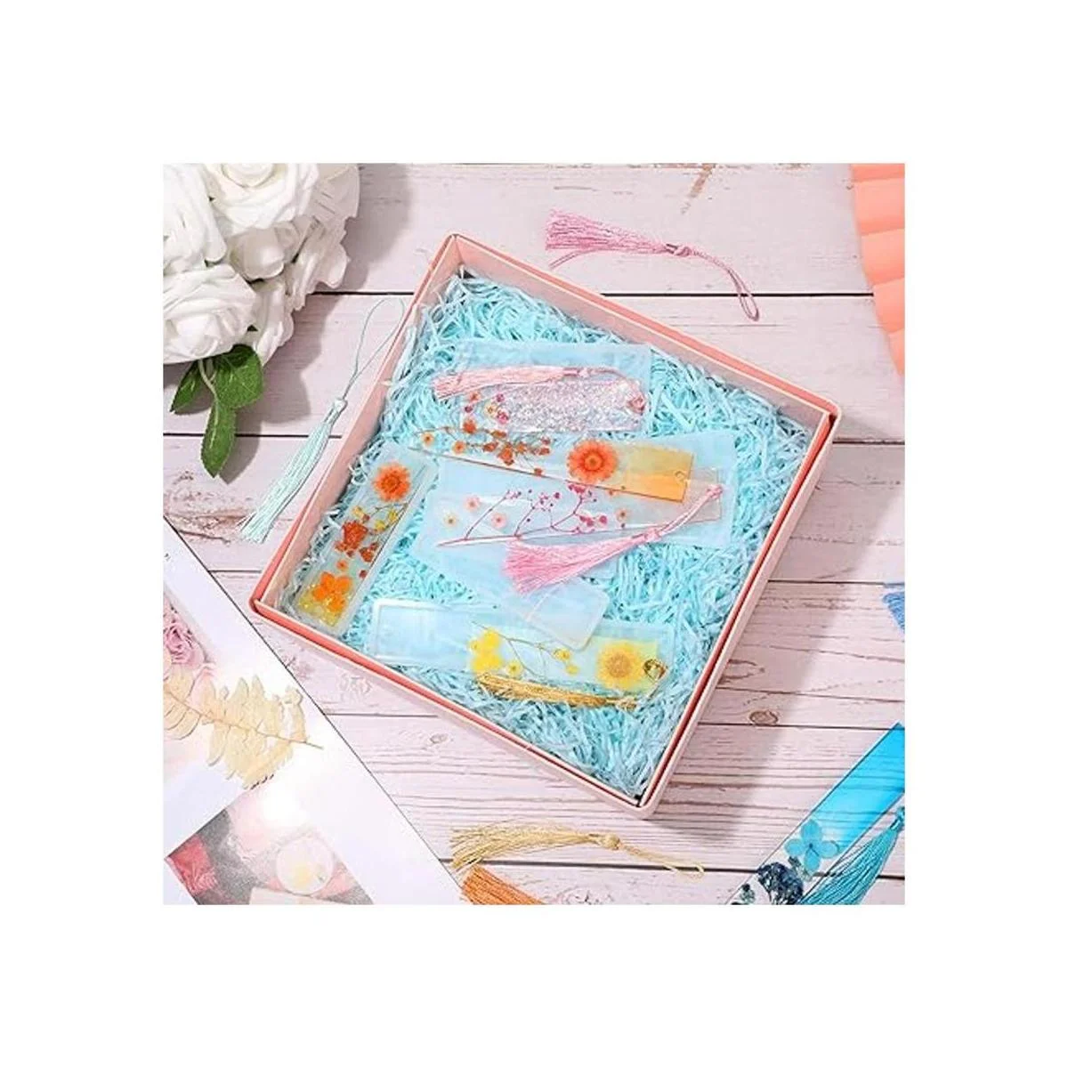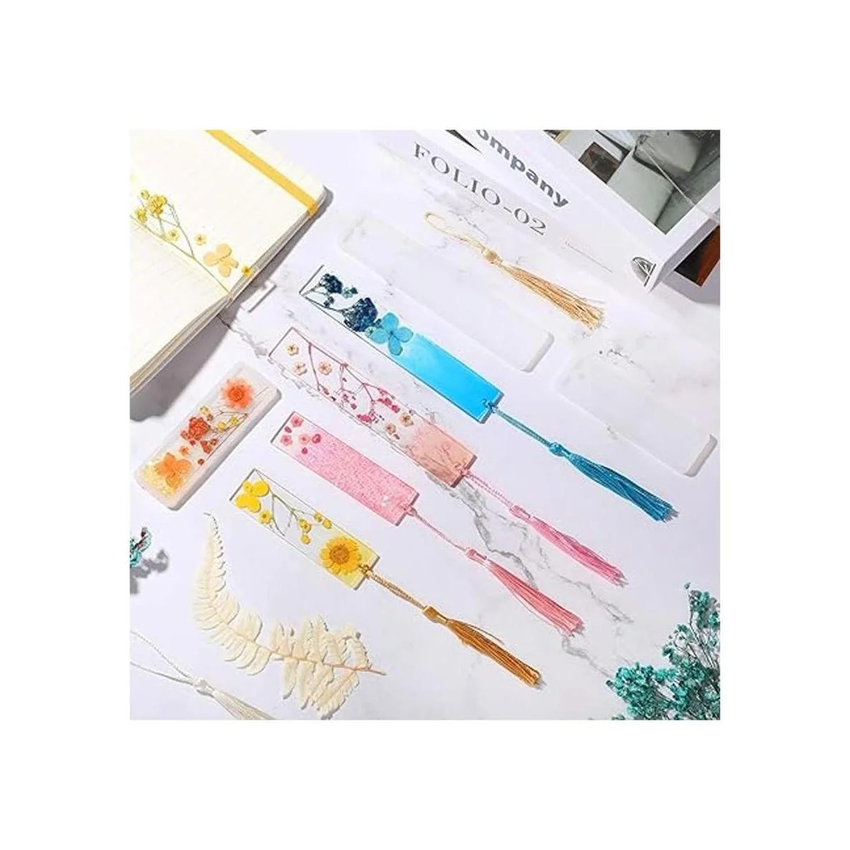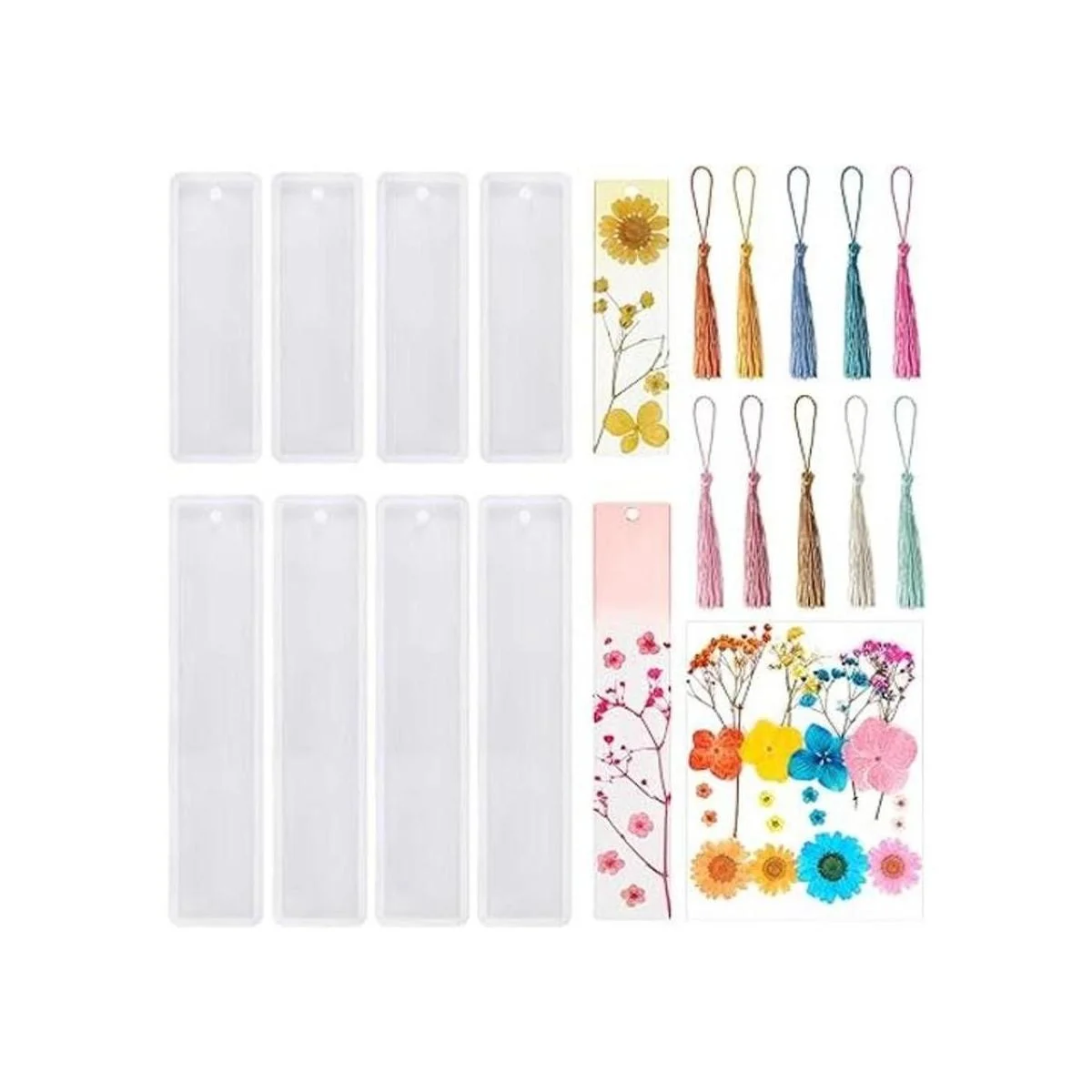 Juego de moldes de resina de 38 piezas, incluye molde de silicona rectangular para marcapáginas, molde de joyería de resina epoxi con borlas coloridas y flores secas para hacer joyas y marcapáginas