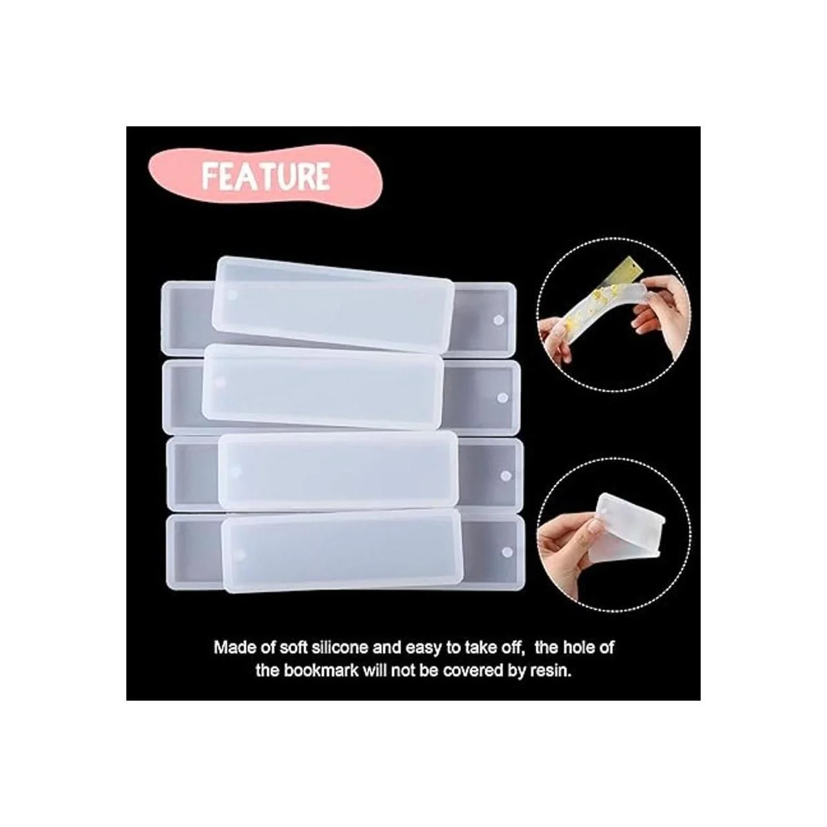 Material de calidad: nuestro molde de silicona para marcapáginas está hecho de silicona de calidad, flexible, resistente a desgarros y fácil de limpiar, lo que puede ayudarte a hacer marcadores personalizados, te permite obtener bordes rectos y suaves; el agujero en la parte superior del molde para marcapáginas te permite cruzar con cuerda o cadena fácilmente, sin necesidad de otras herramientas para perforar un agujero; los moldes deben almacenarse a temperatura ambiente y mantenerlos alejados de la luz solar directa, limpiar el molde después de cada uso para mantener el brillo y prolonga la vida útil del molde