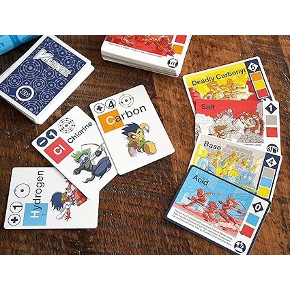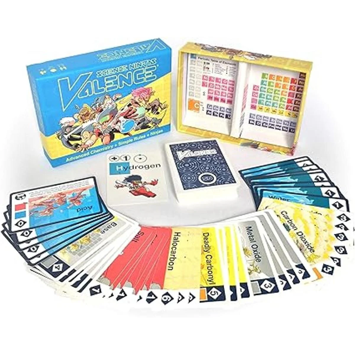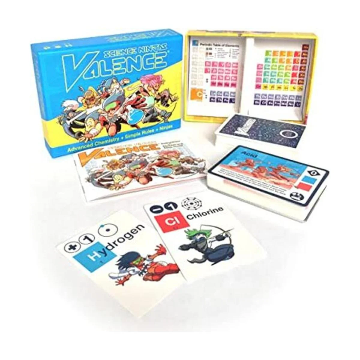 Juego de naipes con las valencias, químicas avanzada y reglas sencillas, de Science Ninjas, para enseñar a los niños cómo se forman las moléculas cómo interactúan los químicos
