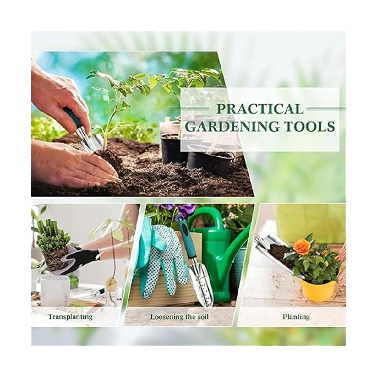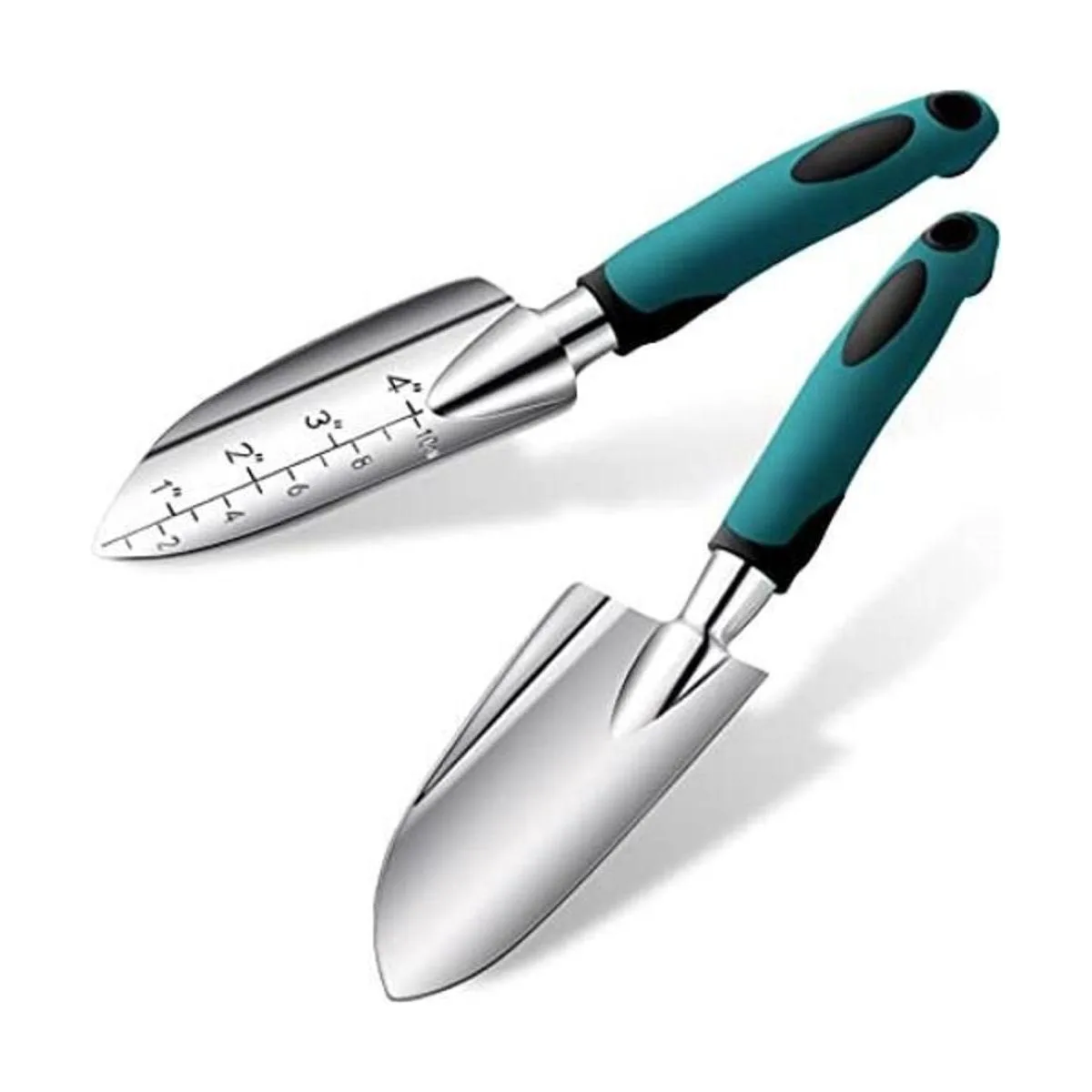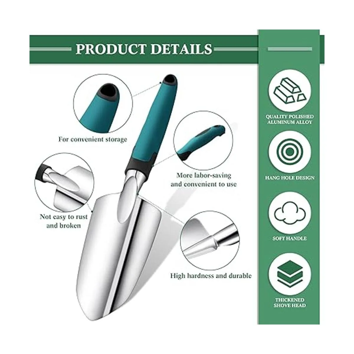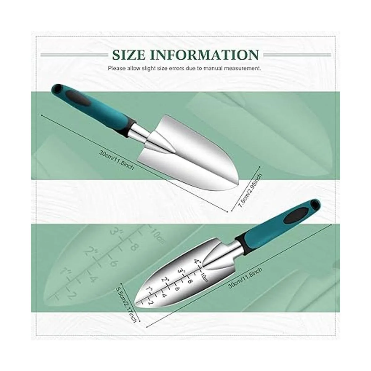 Juego de palas de jardinería, pala de mano de jardín, paleta de trasplante, herramientas de plantación de aleación de aluminio con mango de goma para jardinería, cultivo, jardinería, suministros de plantación verde