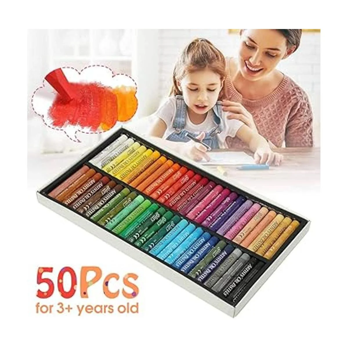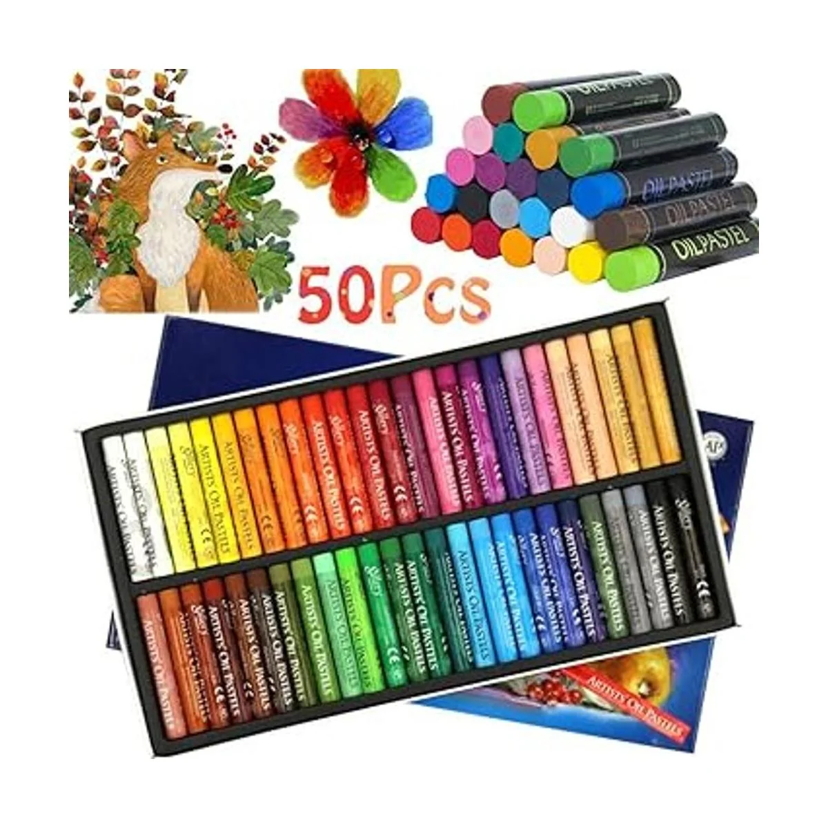 Juego de pastel al óleo, pintura profesional, pasteles al óleo suaves, dibujo, grafiti, crayones artísticos, lavables, redondos, no tóxicos, palitos pastel para artistas, niños, estudiantes, principiantes (50 colores)