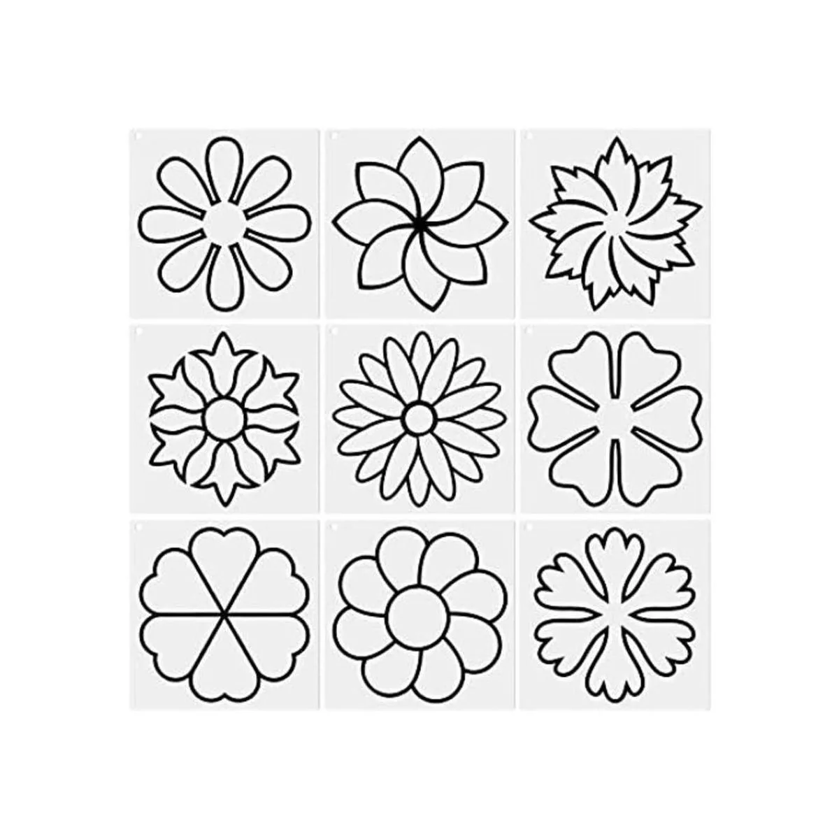 Juego de plantillas de 9 piezas para acolchar, plantillas de costura de flores, plantillas reutilizables de mylar con anillo abierto de metal para coser en tela y ropa