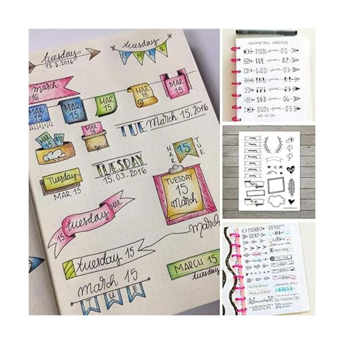 Variedad y plantillas útiles: deja que tus páginas de diario cobren vida con nuestro juego de plantillas variadas, incluyendo fuentes, plantillas del alfabeto, plantilla circular, iconos, formas y mucho más, lo que te permite hacer tus propios garabatos de diario que importan y rastreadores de hábitos, uso para planificador de presupuesto, cartas a amigos, diario de la Biblia, suministros de álbumes de recortes y cuadernos