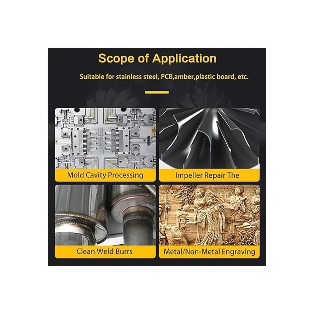 Material de alta calidad: hecho de acero de tungsteno de alta calidad, se puede utilizar para procesar: hierro, acero, acero al carbono, acero de aleación, acero inoxidable, cobre, aluminio y otros metales, y mármol, jade, otros no metales. Dureza de procesamiento hasta HRA85.