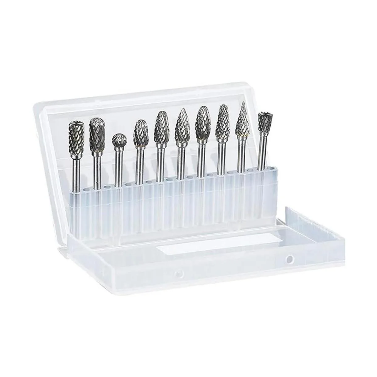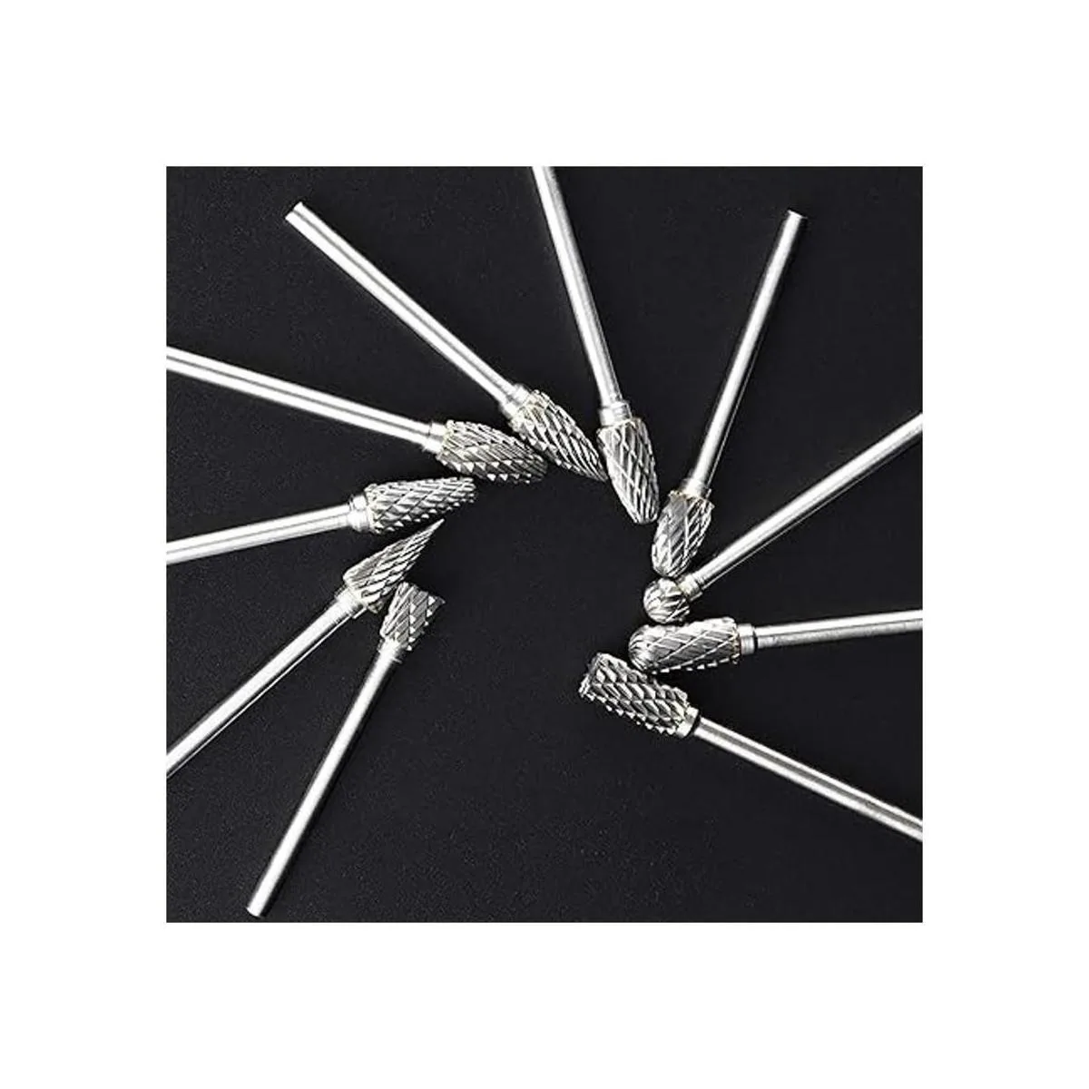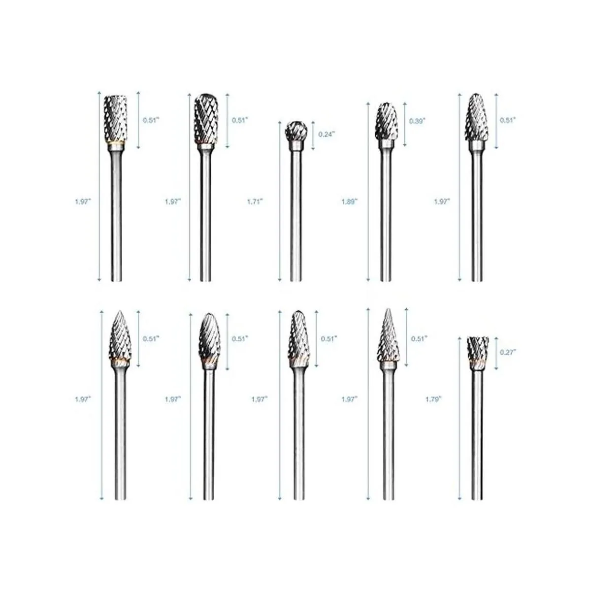 Juego de rebabas rotativas, 10 piezas de carburo de tungsteno, juego de fresas rotativas de doble corte, lima para herramienta giratoria para grabado, trabajo de madera, pulido y perforación, vástago de broca de 18 pulgadas, tamaño de cabeza de 14 pulgadas
