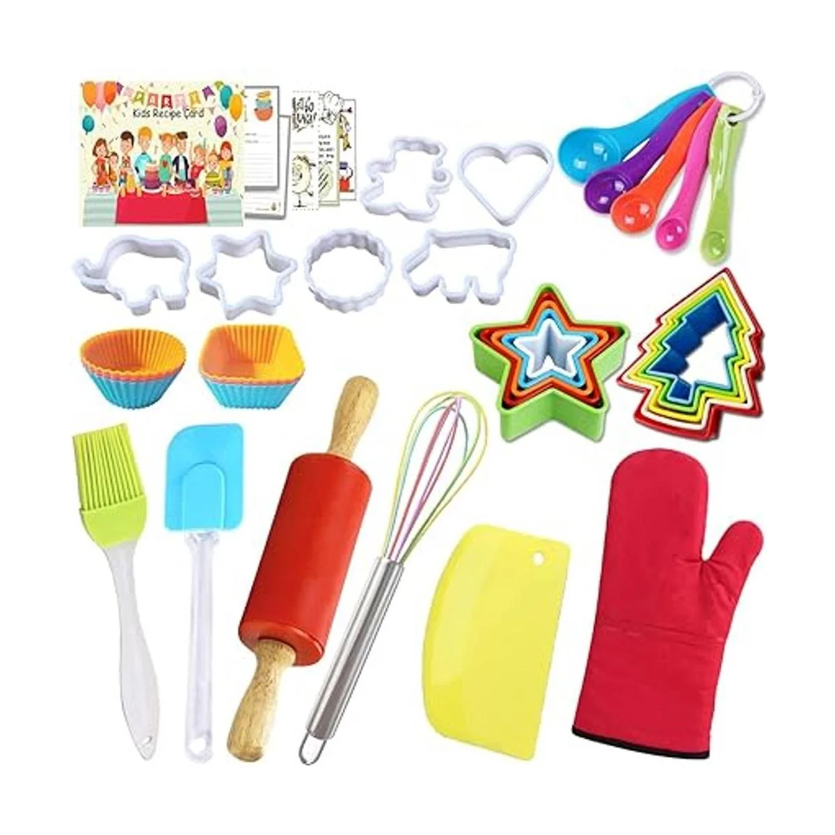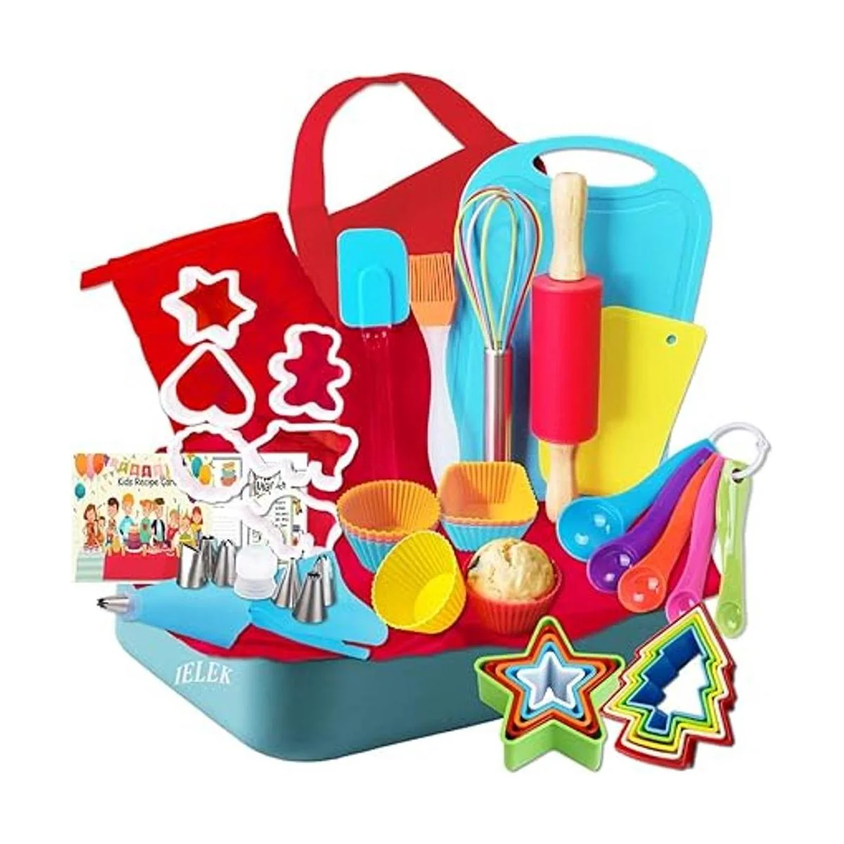 Experiencia de horneado real para niños: el juego de regalo de cocina para niños de 52 piezas de IELEK proporciona la mejor experiencia de horneado para los niños. Cada pieza tiene un diseño humanizado y proporciona protección a los niños. El juego de hornear incluye delantal para niños, gorro de chef, guante de horno, rodillo para niños, espátula, cepillo para pastelería, batidor, cucharas medidoras, cortadores de galletas, tazas para hornear, tabla de cortar, raspador, bolsa de tuberías, boquillas de tubería y tarjetas de recetas. Tus pequeños se sentirán tan locos ayudándote a cocinar/hornear con sus propias cosas.