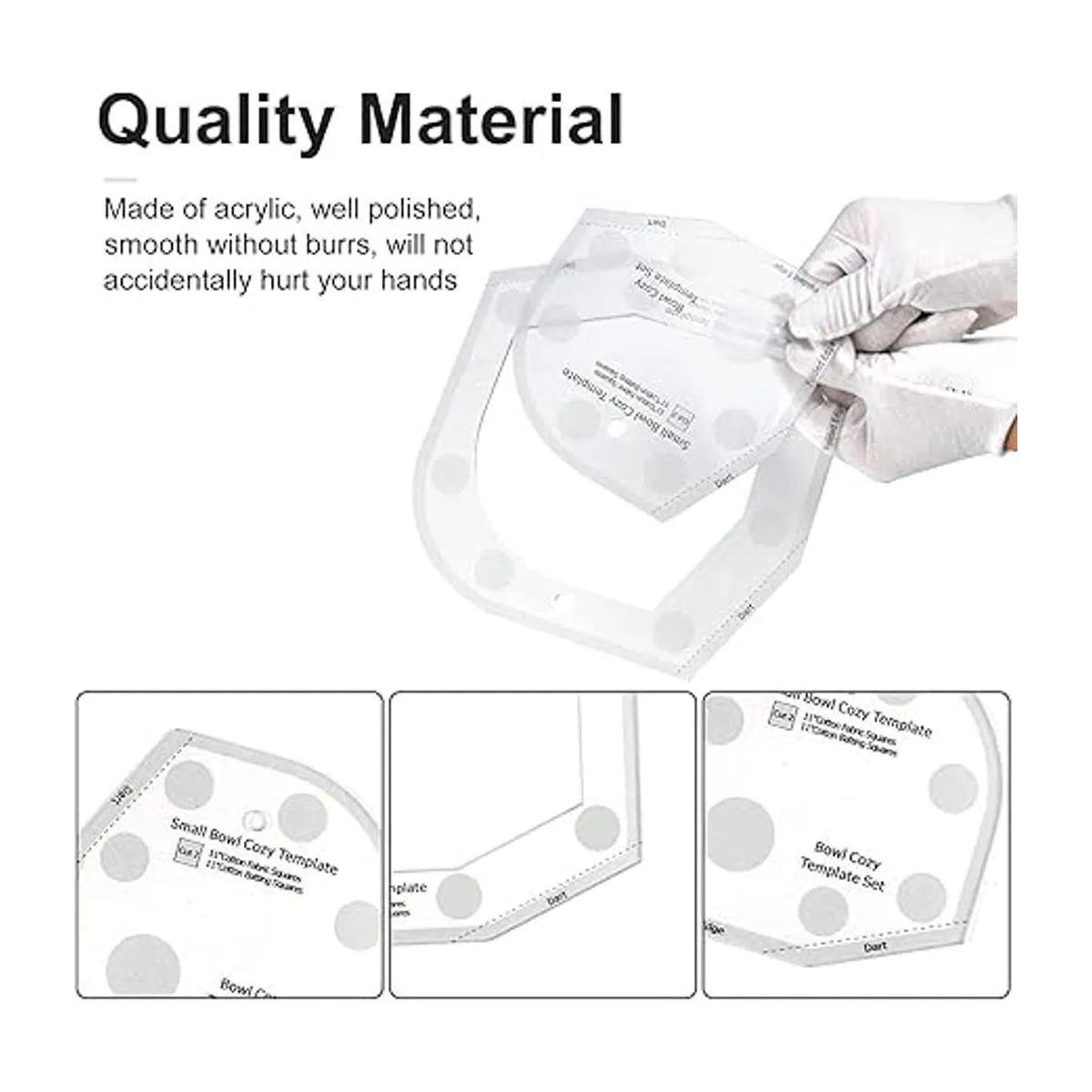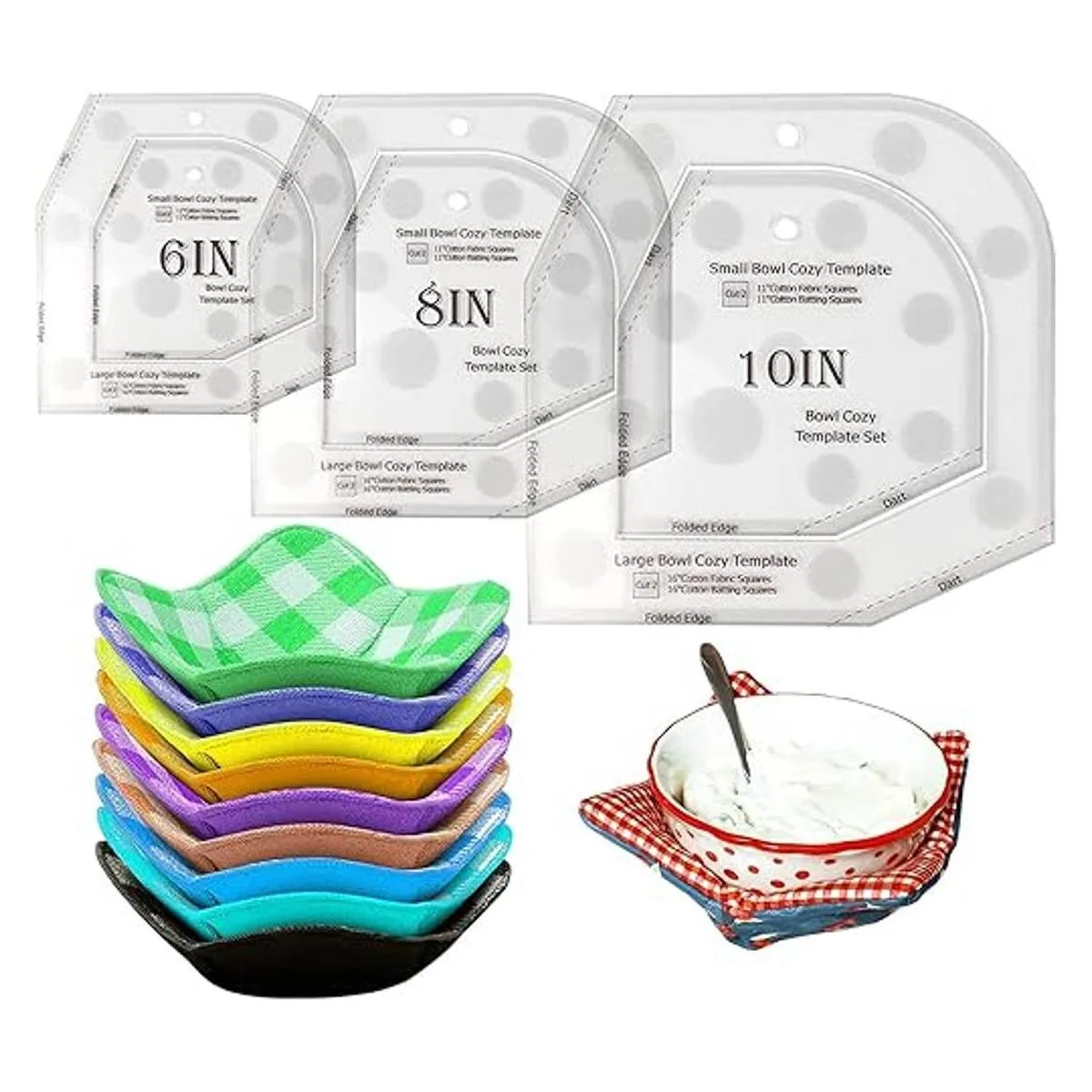 Juego de reglas de corte de plantillas acogedoras, 3 piezas, plantillas de cuencos de acrílico transparentes para alimentos calientes y fríos, plantillas de acrílico cortadas en la plantilla de costura 6 pulgadas, 8 pulgadas, 10 pulgadas