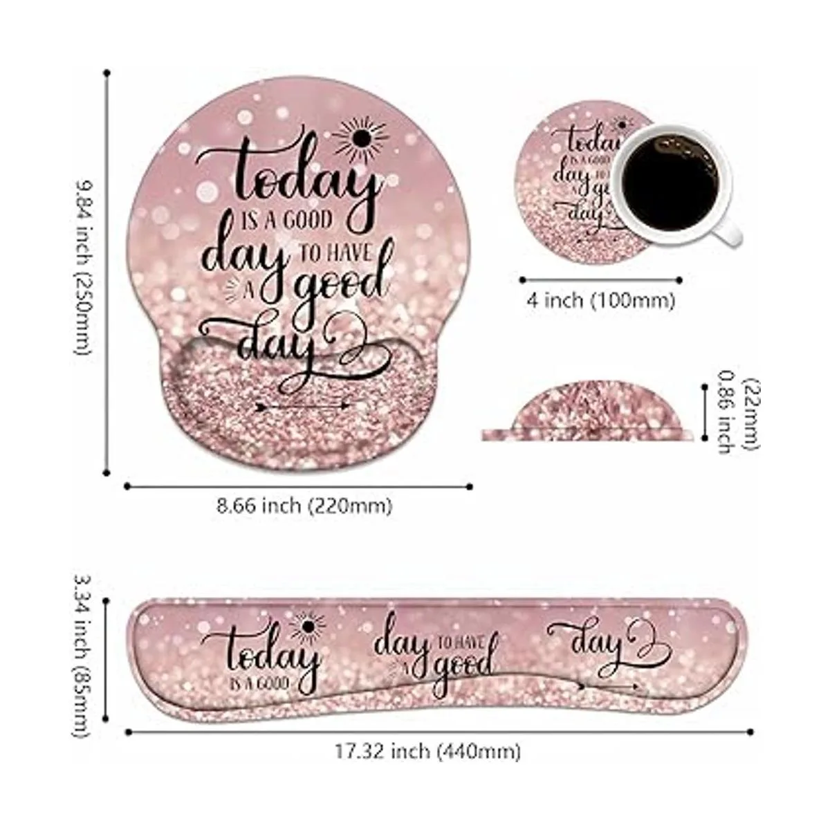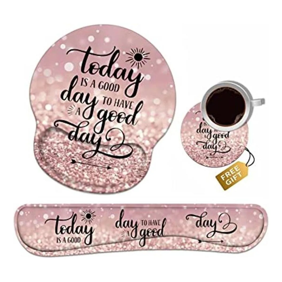 Juego de reposamuñecas para teclado alfombrilla de ratón con posavasos, Today is a Good Day to Have a Good Day Cita inspiradora con base de poliuretano antideslizante Alfombrilla ergonómica para el hogar y la oficina y el trabajo de estudio