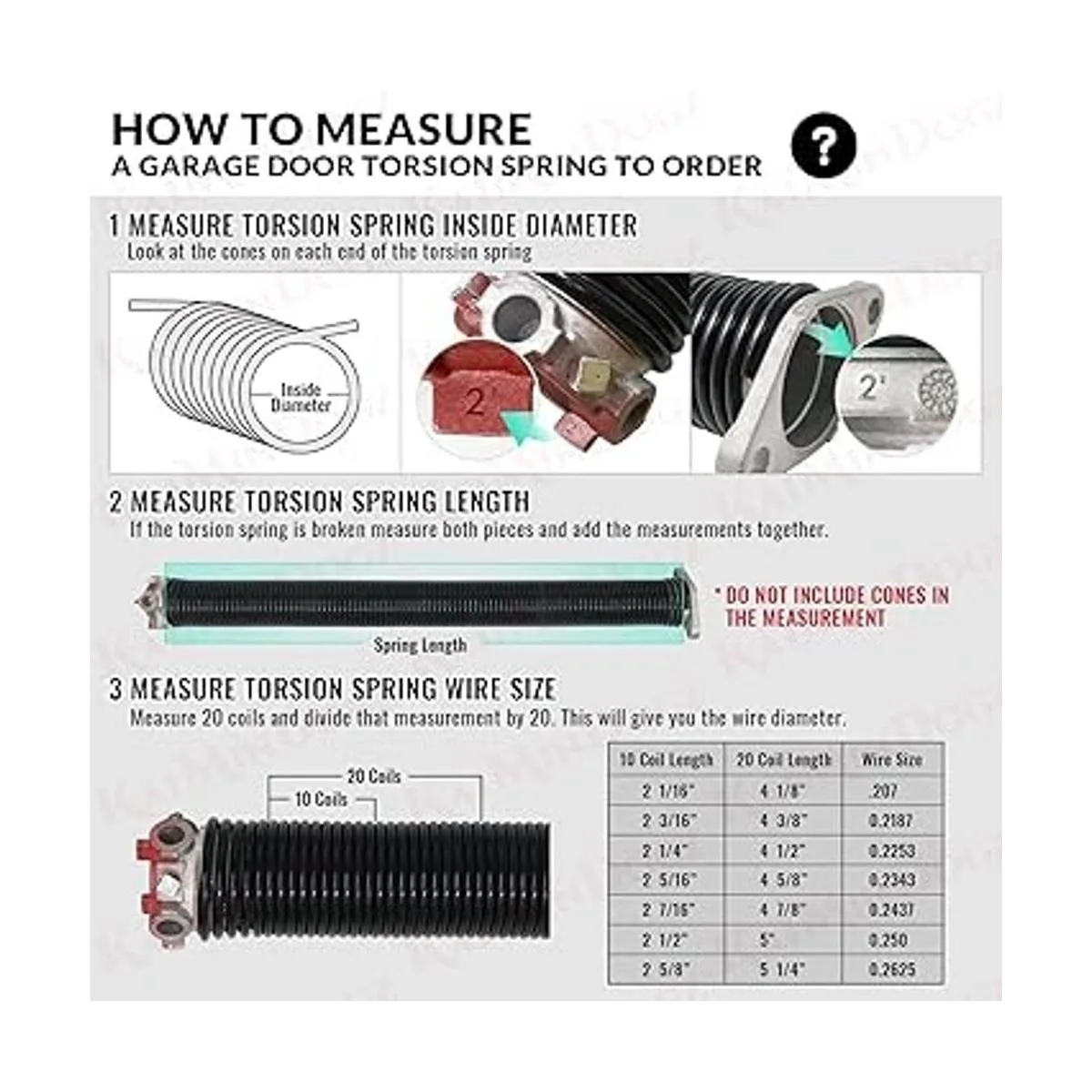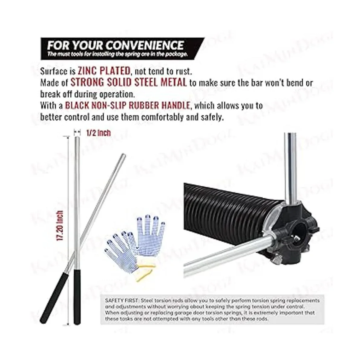 Instalación sencilla: utiliza muelles de torsión de puerta de garaje de alta calidad KaiMinDogz para reemplazar los viejos muelles de puerta de garaje rotos. Tener la experiencia de instalar resortes de torsión puede ahorrar mucho dinero.