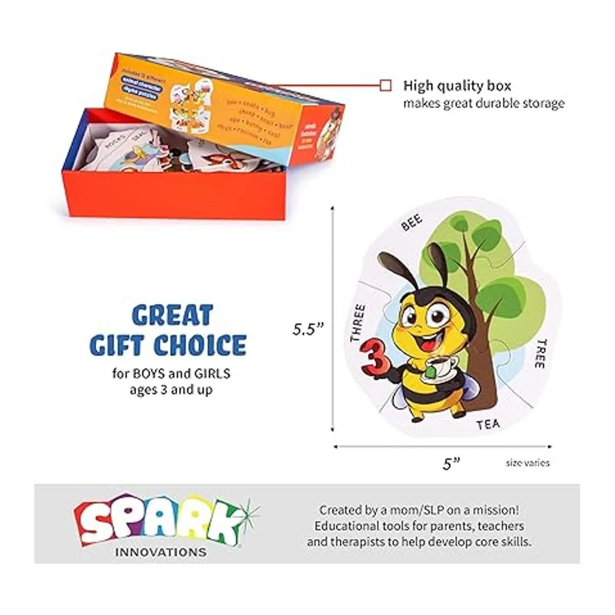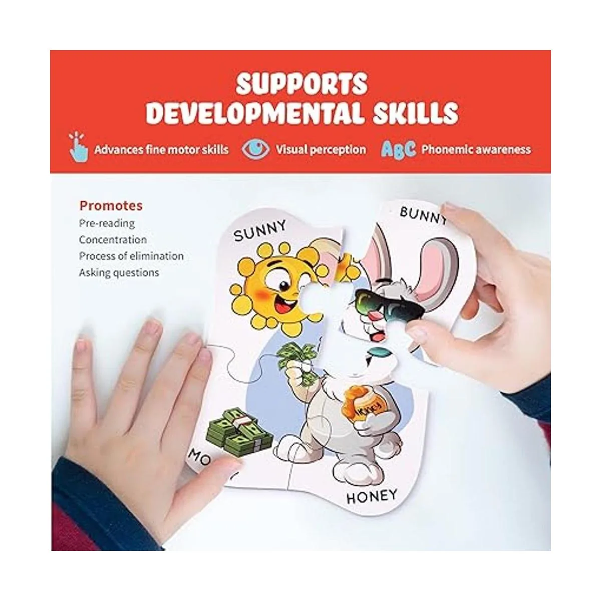 Divertido y educativo: más que un rompecabezas básico de rima, 48 tarjetas a juego, 12 rompecabezas de personajes de animales con 4 rimas cada uno para diversión sin fin y aprendizaje educativo, no requiere lectura