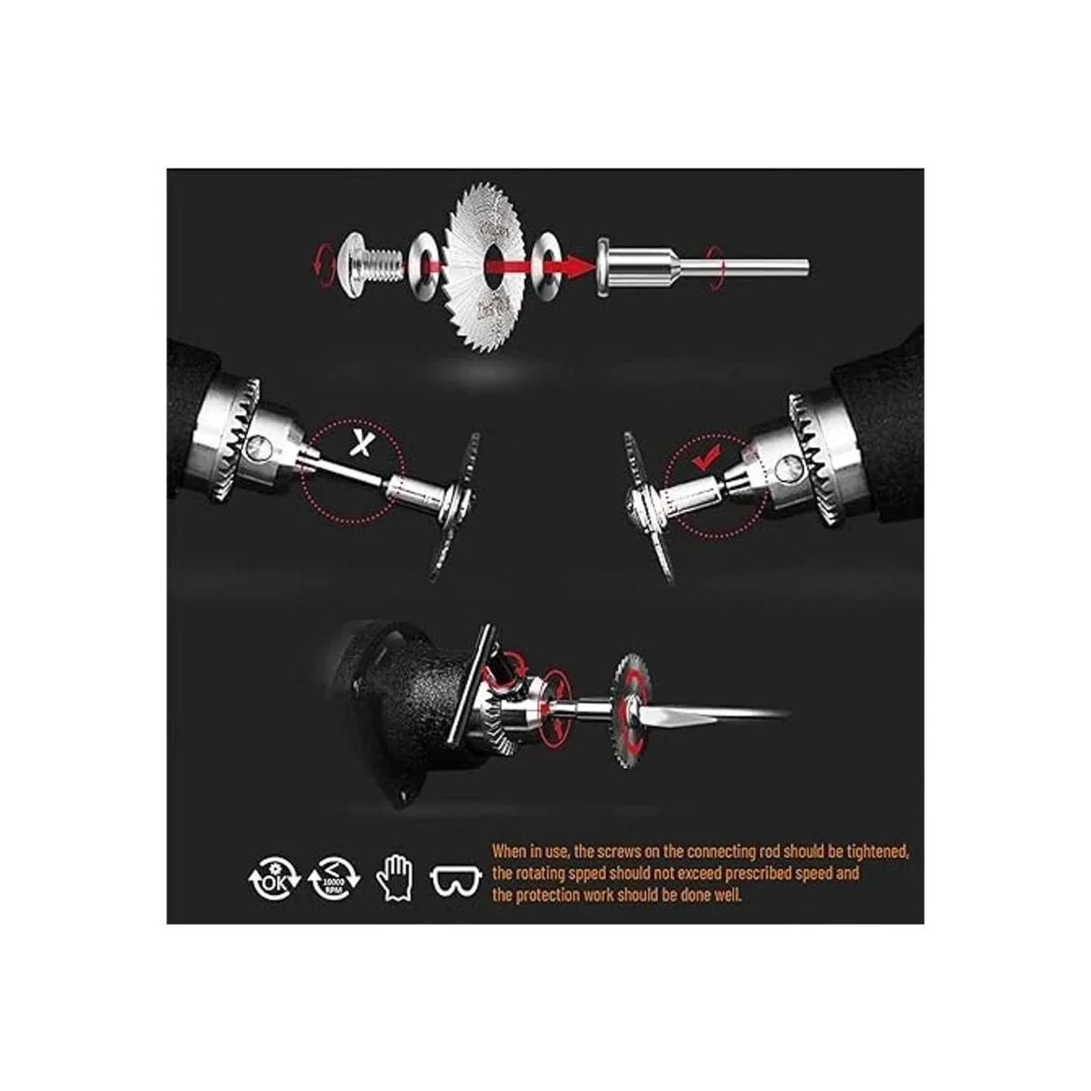 5. para tu seguridad, debes usar guantes y gafas y tener cuidado con las chispas cuando utilices accesorios de herramientas giratorias. Si no estás satisfecho con nuestro producto. Cualquier problema, no dudes en ponerte en contacto con nosotros, estamos encantados de hacer un completo o reemplazo. Muchas gracias por tu apoyo