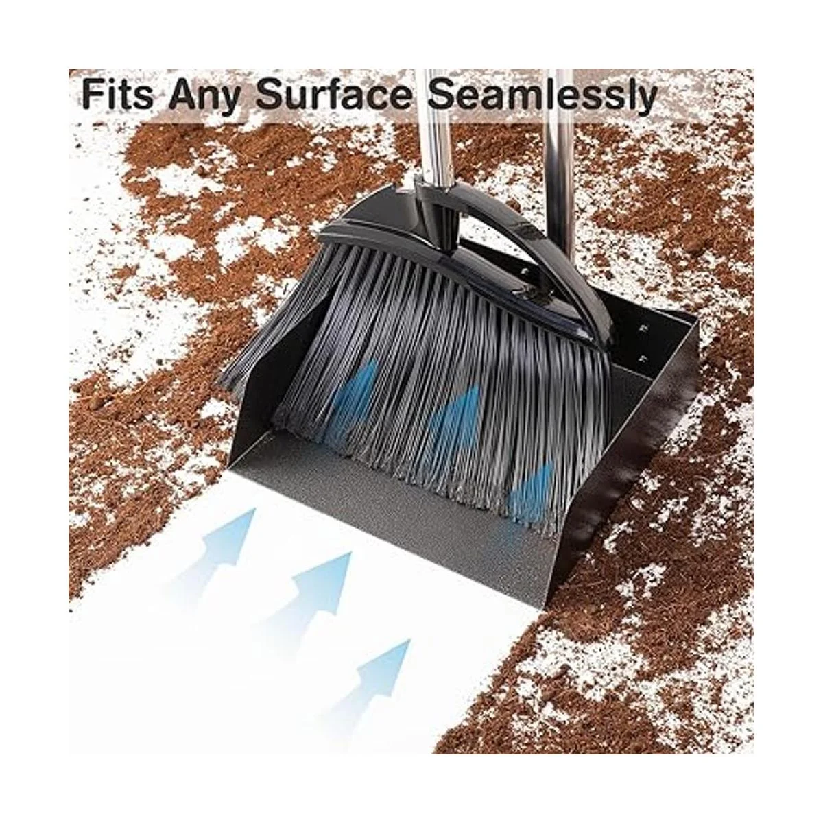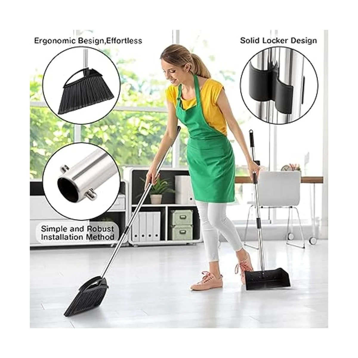 Juego de sartenes y escobas de mango largo para el hogar, sartenes y escobas de acero inoxidable de metal resistente, diseño de pie vertical, escoba de 54 pulgadas y recogedor de polvo de 38 pulgadas para el hogar, suelo del vestíbulo, patio, cocina en casa, oficina