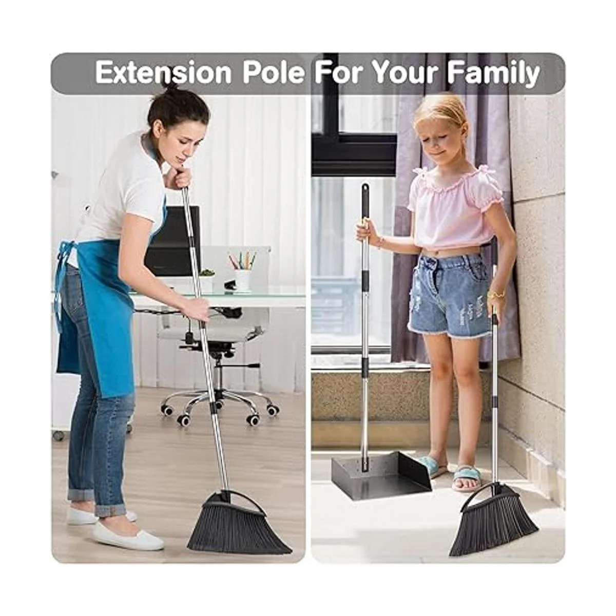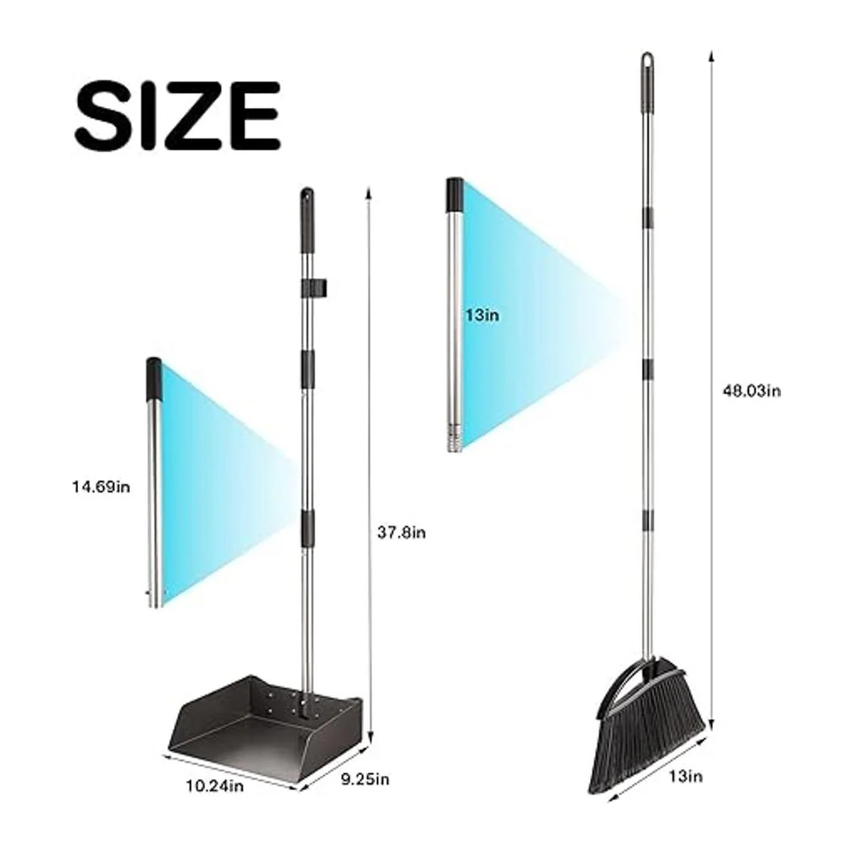 Este juego incluye tanto la escoba como el recogedor: los recogedores con mango son de 35 pulgadas de altura, diseño de mango largo que significa que ya no es necesario agacharse. Escoba con función de extensor es de 48 pulgadas de altura, el extensor es de 13 pulgadas de altura, la altura se puede ajustar para satisfacer a toda la familia.