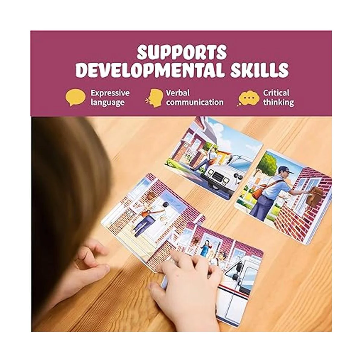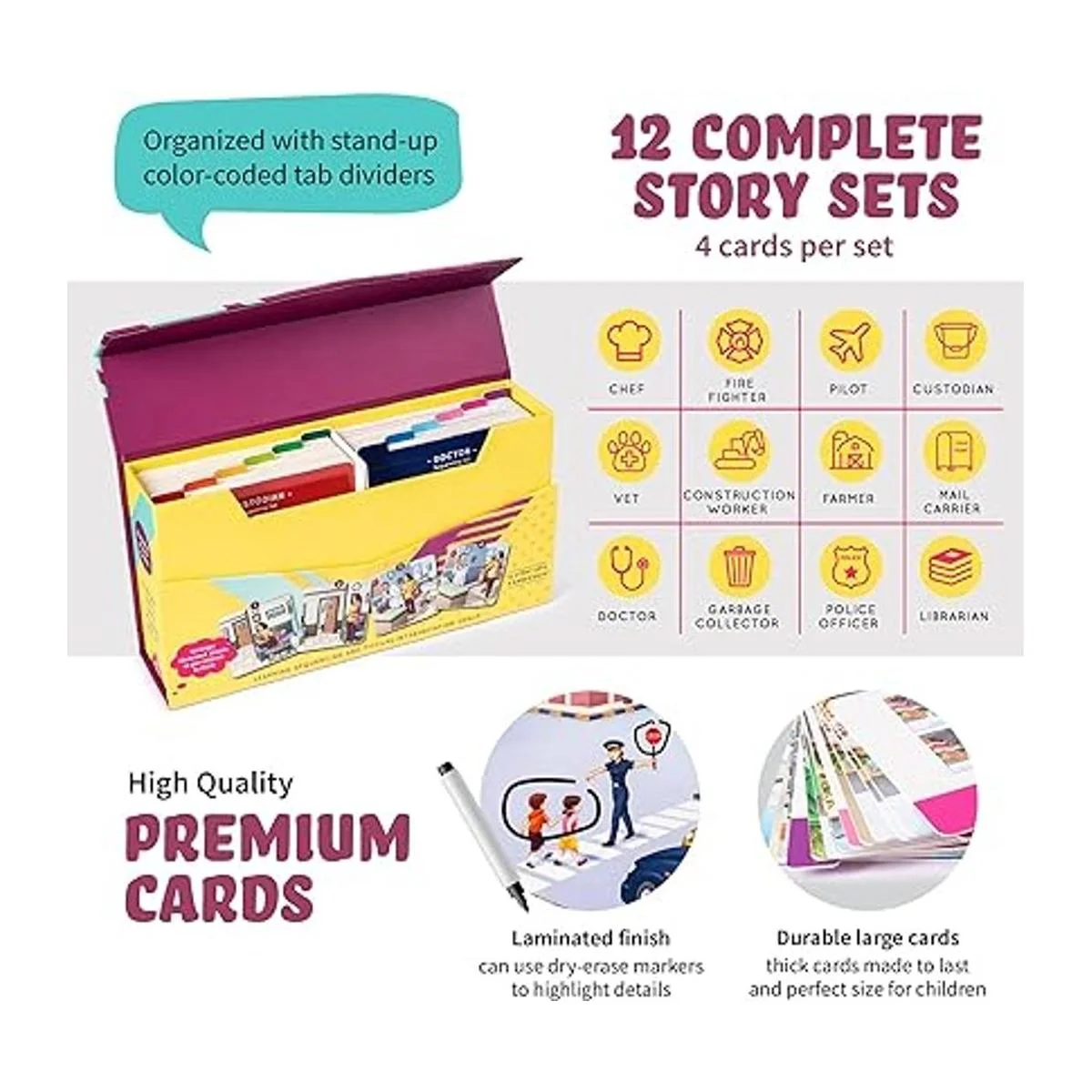 Juego de secuencia de tarjetas de cuentos para niños, juego de 48 tarjetas grandes de narración y secuenciación. Ayudante comunitario, 12 historias para construcción de oraciones y desarrollo del idioma, juegos de cartas educativos, a partir de 4 años
