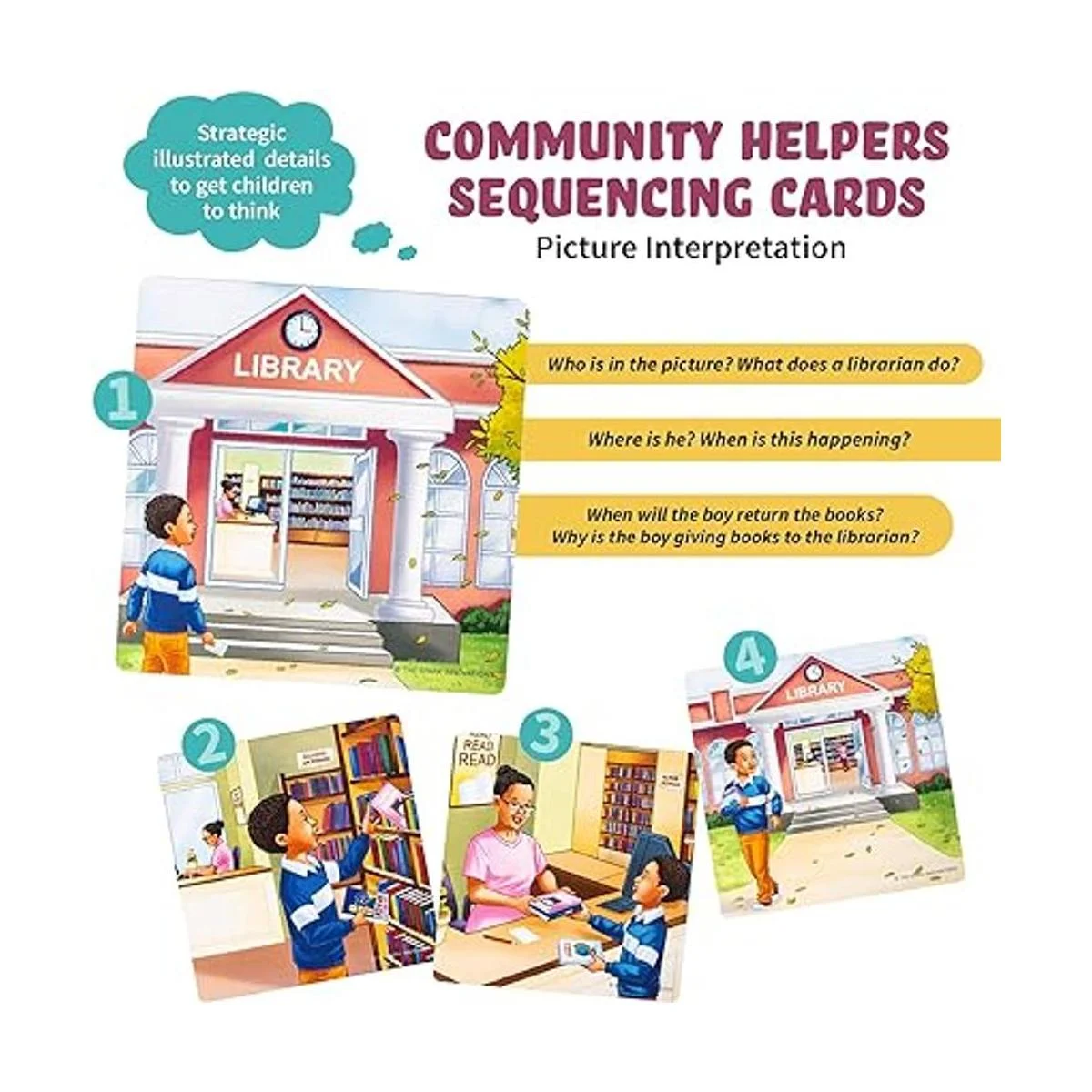 Divertido y atractivo: Vínete con tu hijo Comienza una conversación con tu hijo o juega juegos de narración con las cartas de secuencia temáticas de ayudante comunitario. Los colores brillantes y las divertidas ilustraciones son aptas para niños y mejoran las habilidades de comunicación en niños a partir de 3 años.